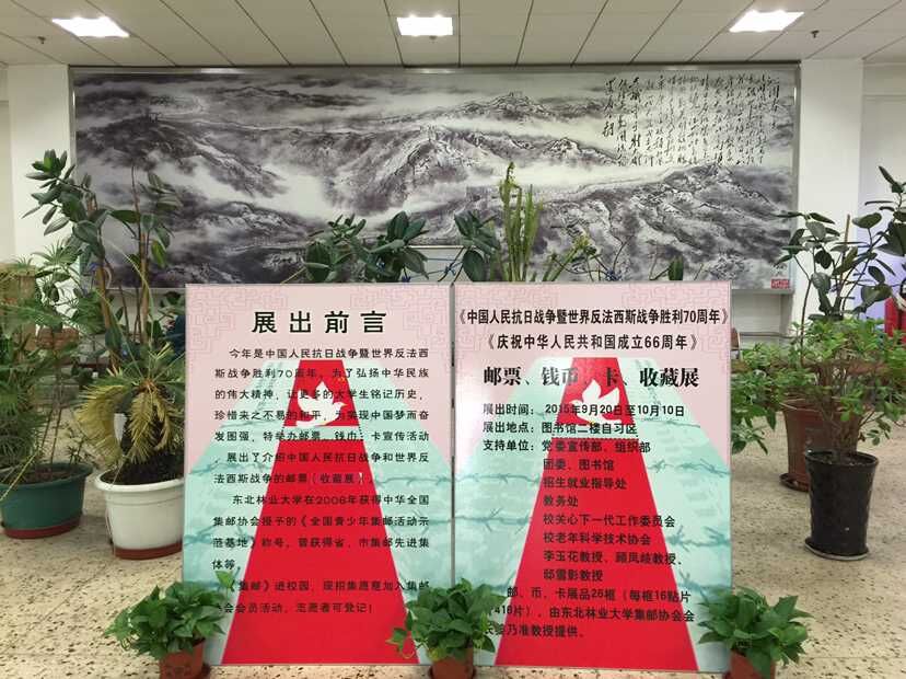 今年是中国人民抗日战争暨世界反法西斯战争胜利70周年,中华人民共和国成立66周年的国庆节也即将到来,在这样一个富有深刻意义的时节,东北林业大学党委宣传部、组织部、图书馆以及招生就业指导处、教务处、关心下一代工作委员会、老年科学技术协会等多部门联袂举办了这次展览活动,李玉花教授、顾凤歧教授、邸雪影教授也对这一活动给予了热情支持。本次展览旨在弘扬中华民族的伟大精神,让广大师生铭记历史,珍惜来之不易的和平,为实现中国梦而奋发图强。