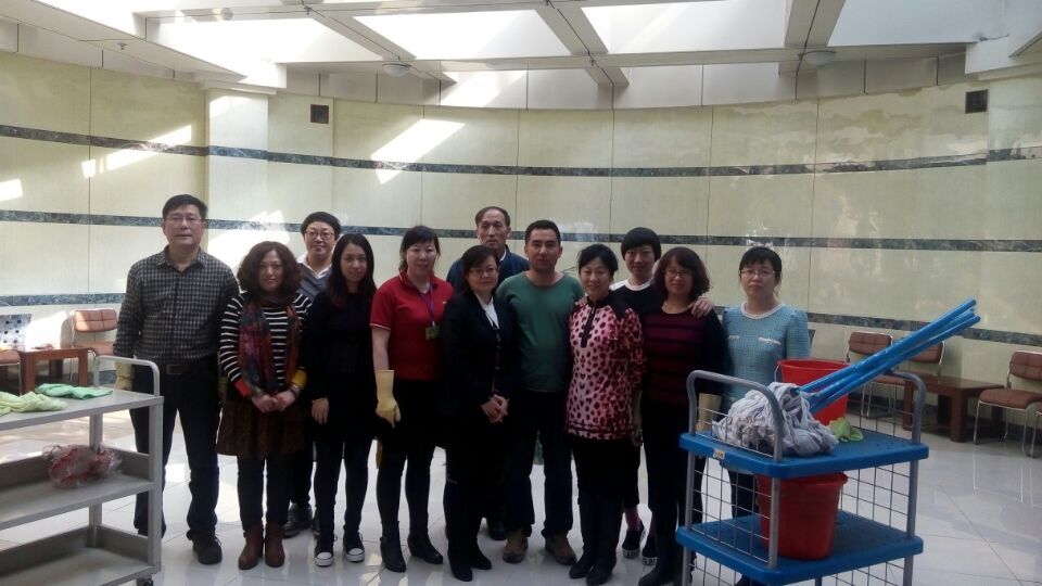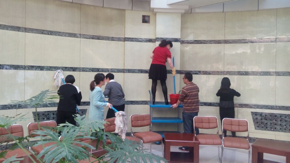 3月25日下午,图书馆文献资源管理党支部组织全体党员在A楼六楼圆厅开展了一次墙面除尘义务劳动。