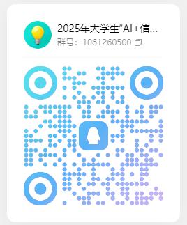 2.组委会将组织参赛学生进行统一的赛前培训。校级选拔赛培训时间为9月15日,参赛同学请务必加入到2025年大学生“AI+信息素养”大赛群,以便获取培训、晋级、组队等相关信息。