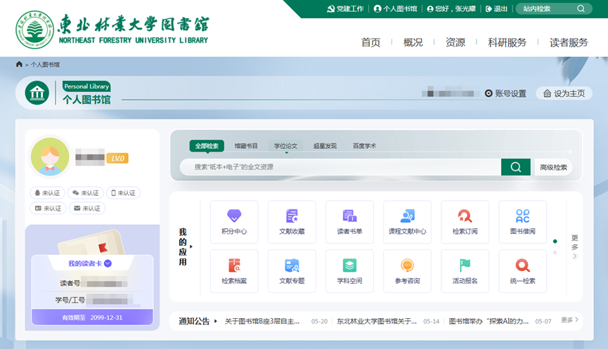 同时,个人图书馆也会呈现与读者相关的最新动态,比如关注的专题动态、期刊订阅信息等。还可以把个人主页设置为默认页面,下次访问图书馆门户就可以自动进入。