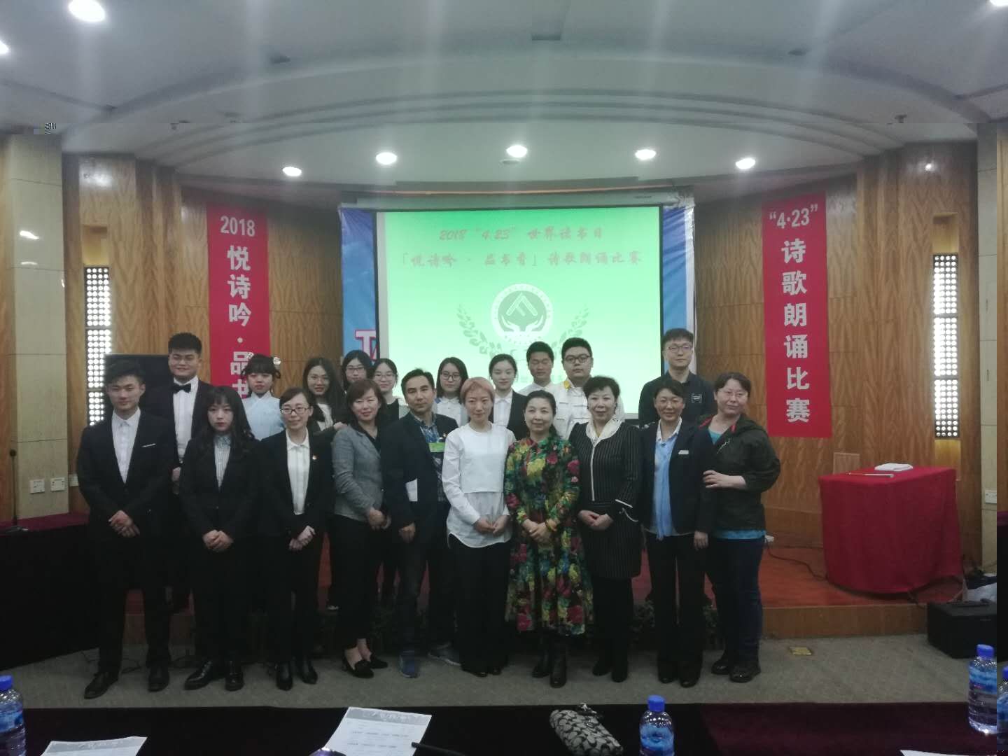 仪式结束后,图书管理部组织了志愿者“悦诗吟·品书香”诗歌朗诵比赛活动。节目主题突出,内容丰富多彩,得到了评委及观众的一致好评,活动最后,图书管理部外文流通阅览区老师修文举同志用英文在现场朗诵了经典英文诗歌《Youth》,将本次活动推向高潮。