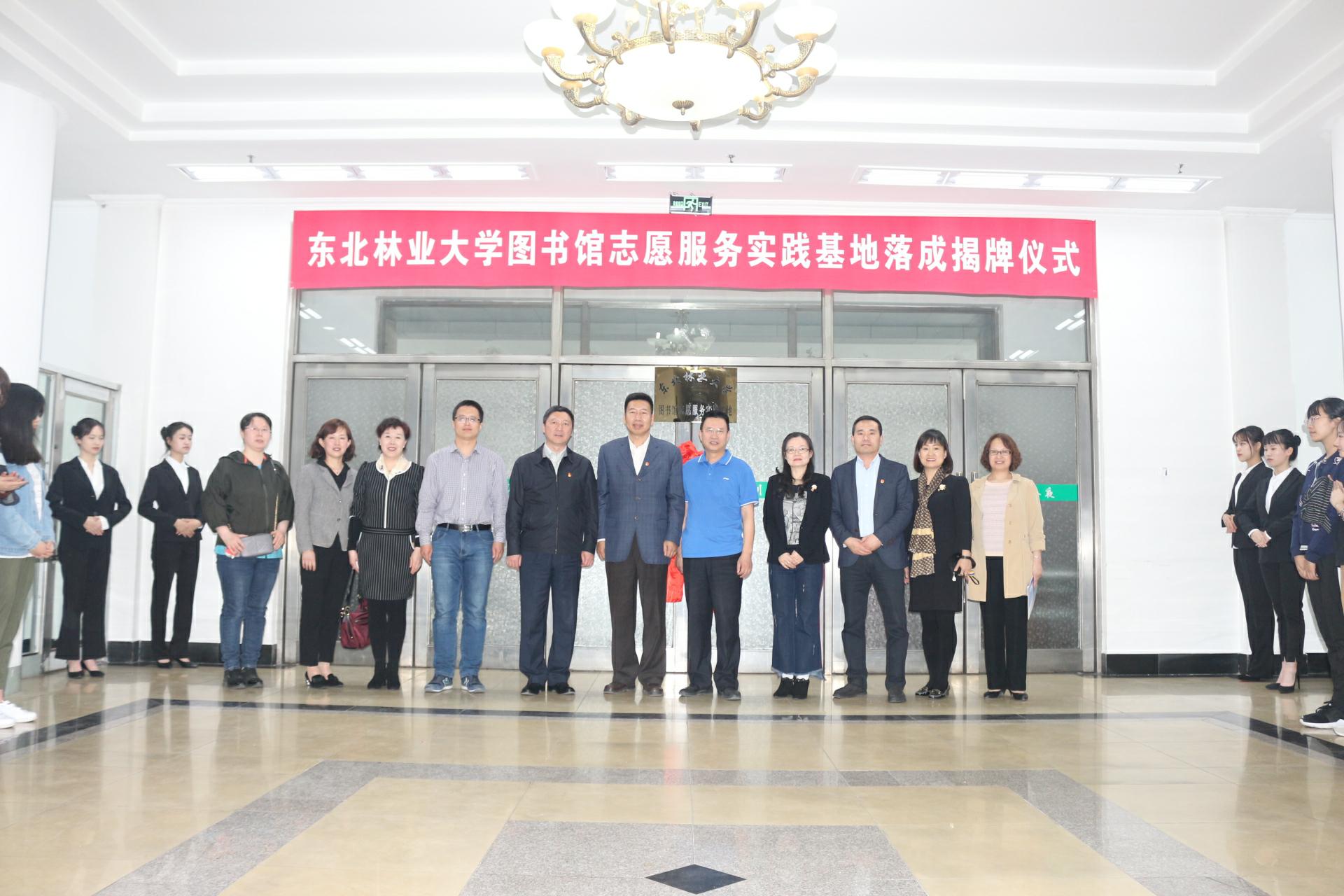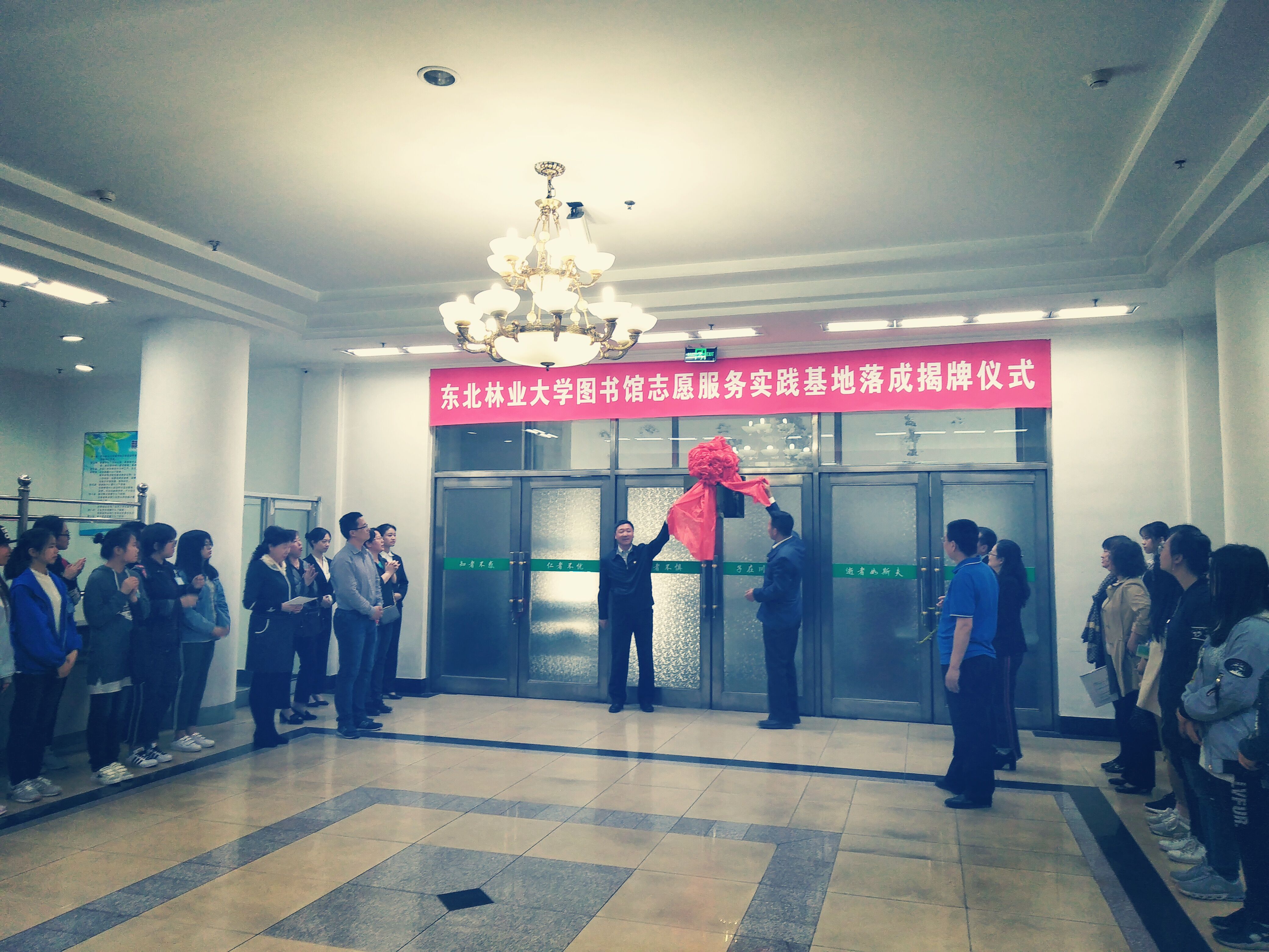 党委学工部部长王春海和图书馆馆长王立海共同为东北林业大学图书馆志愿服务实践基地揭幕,并观看了志愿服务实践基地工作室。