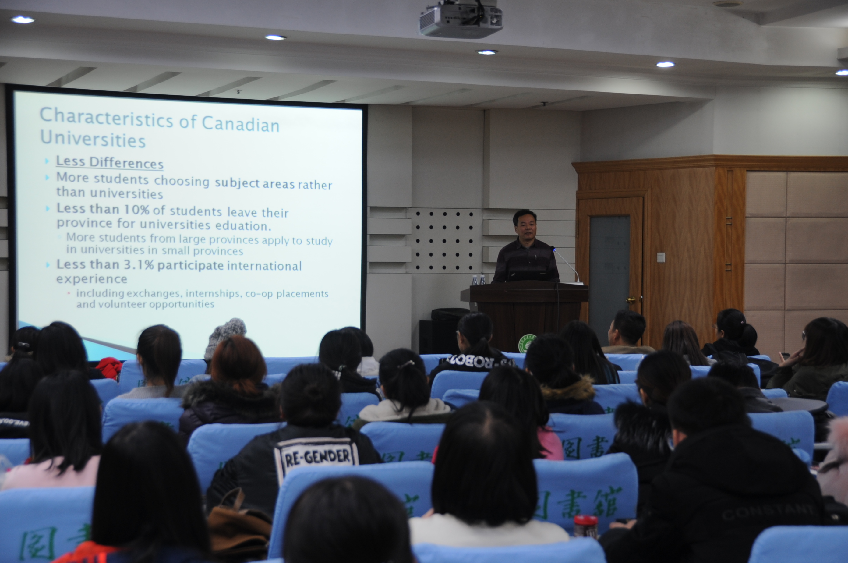 孟繁瑞教授从加拿大高等教育种类特点、教育趋势、留学加拿大的申请材料、申请流程及学费杂费等方面做了详细介绍。讲座过程中,孟教授讲述了加拿大高校目前的教育形式,以大量丰富真实的案例介绍了加拿大的留学特点,为我校有留学意向的学生提供了指导性的建议。