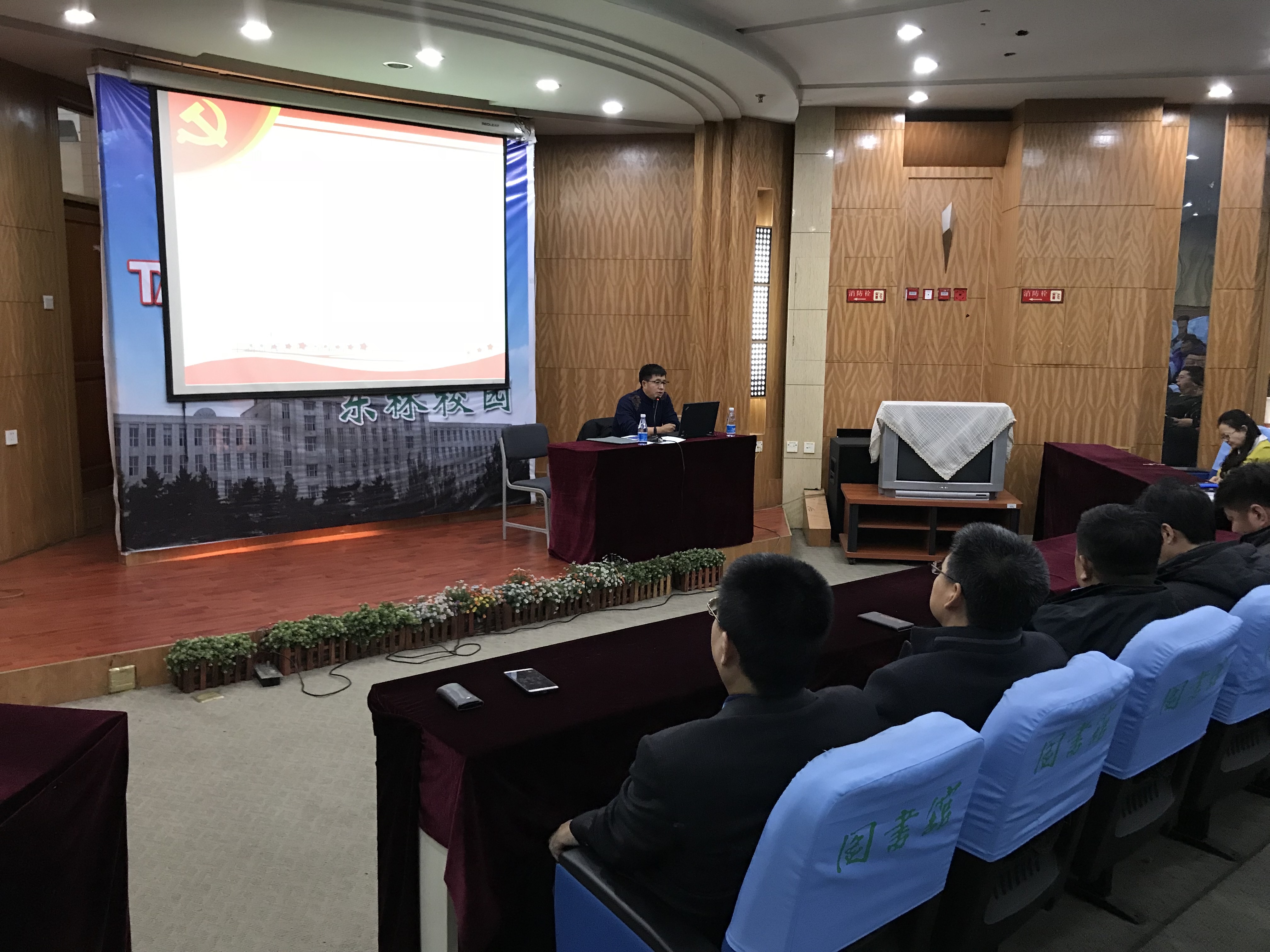 按照校党委对十九大精神宣讲活动的工作部署,11月22日下午,我校十九大宣讲团成员、理学院党委书记侯彦杰同志在图书馆学术报告厅做了《从党的十九大党章修改看全面从严治党》主题宣讲报告。图书馆、科学技术研究院、科技园管理办公室、继续教育学院、国际交流学院五家单位的全体职工听取了报告,报告会由图书馆党总支书记李学益主持。