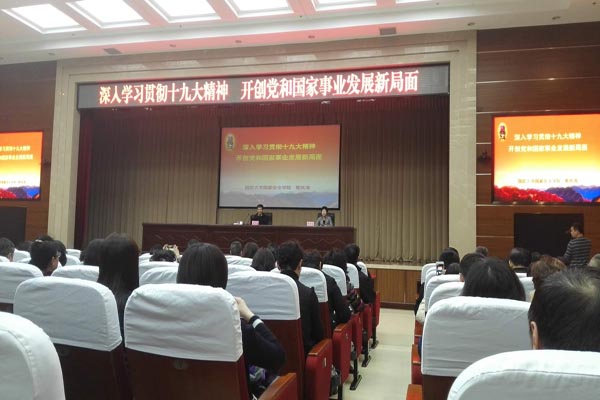 郭凤海教授从深入贯彻党的十九大精神的重大意义、深入领会党的十九大主题内涵及重大决策部署、学习贯彻十九大精神需要把握的几个问题等三个方面进行了专题辅导。