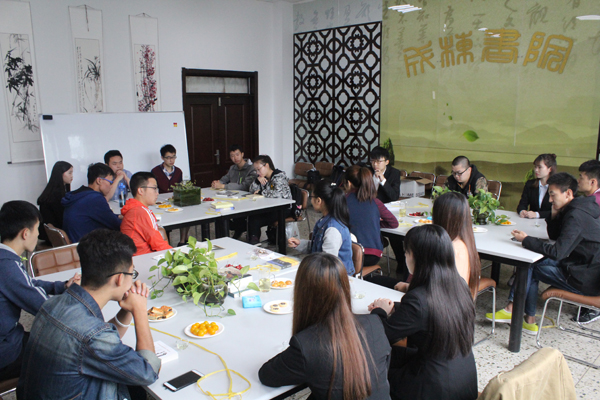活动的热点是主讲人都振超同学引导大家进行“国学与管理学”主题讨论。讨论分别从:“你眼中的管理学”、“你眼中的国学”、“传统文化中的管理学问”三个方面展开。都振超时常以传统文化故事、名言警句、名家观点与同学们分享,让大家对中国管理学有简明的认识。讨论过程中,同学们积极表述自己的见解。整个过程大家都忘记了桌上的美食,在大家热烈的讨论之中,活动时间远远超出了计划的结束时间。