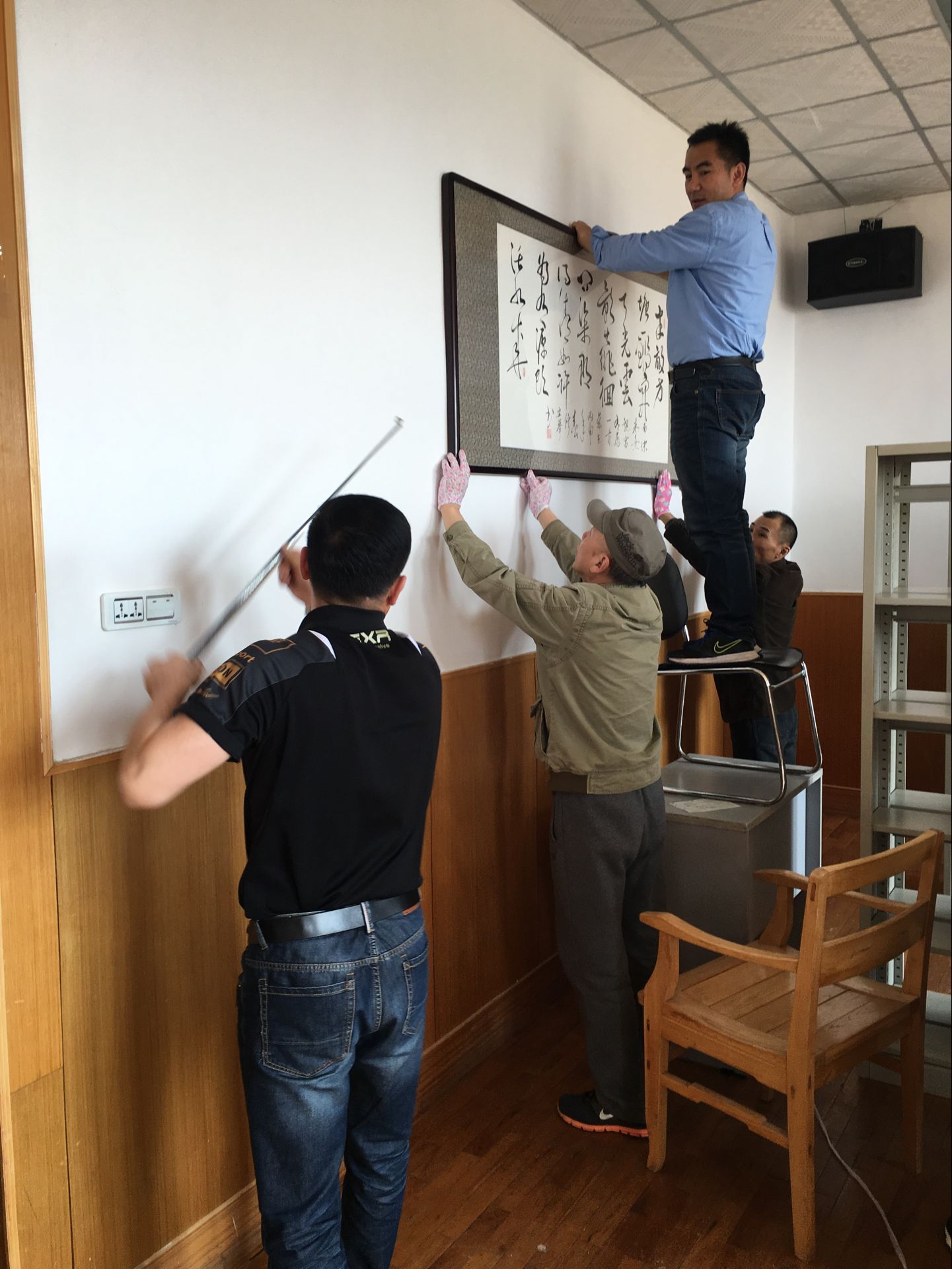 本次支部活动内容以义务劳动为主题,帮助帽儿山教学区图书馆完成文化装饰、书架调整、图书上架以及电子阅读机的安装等工作。全体党员同志分成几组,将书画作品、指示标牌等装饰物悬挂在合适的位置。这些布置与装饰,增添了帽儿山教学区图书馆的文化氛围。同时,同志们把前期运送到帽儿山教学区图书馆的书架进行了安装调整,并将由图书管理部、帽儿山教学区工作人员和文献资源建设部精心挑选的3027册图书全部排序上架。电子阅读机也已安装完毕,待网络接入后便可以调试使用了。本次主题活动得到了帽儿山教学区党总支书记潘雪峰、办公室主任丁驿以及宋雅玲老师的大力支持。