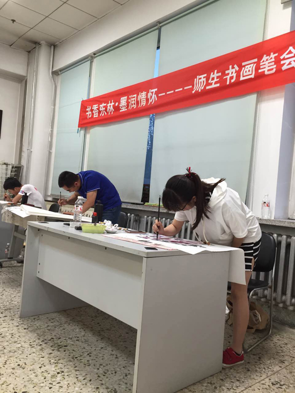 本次活动由文献阅览部主任陈秀华主持。活动开始,王玉波副馆长首先致辞,他代表图书馆对我校书画协会获得2016年全国书法大赛哈尔滨分赛区的授权表示祝贺,希望通过本次笔会活动,为书画爱好者搭建平台,弘扬中华优秀传统文化,交流传播书画艺术,丰富师生校园文化生活,推动“书香东林”活动的开展。笔会活动在大家兴奋的掌声中拉开序幕。