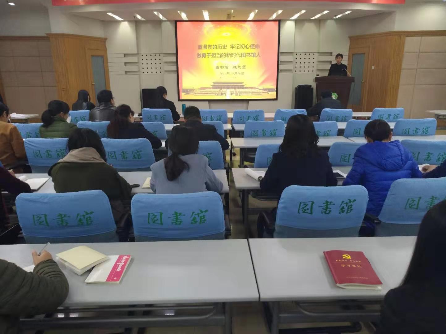 按照图书馆“不忘初心、牢记使命”主题教育学习安排,10月30日下午,图书馆党总支书记魏晓慧以《重温党的历史,牢记初心使命,做勇于担当的新时代图书馆人》为题,为图书馆党员上了一堂生动的党课。