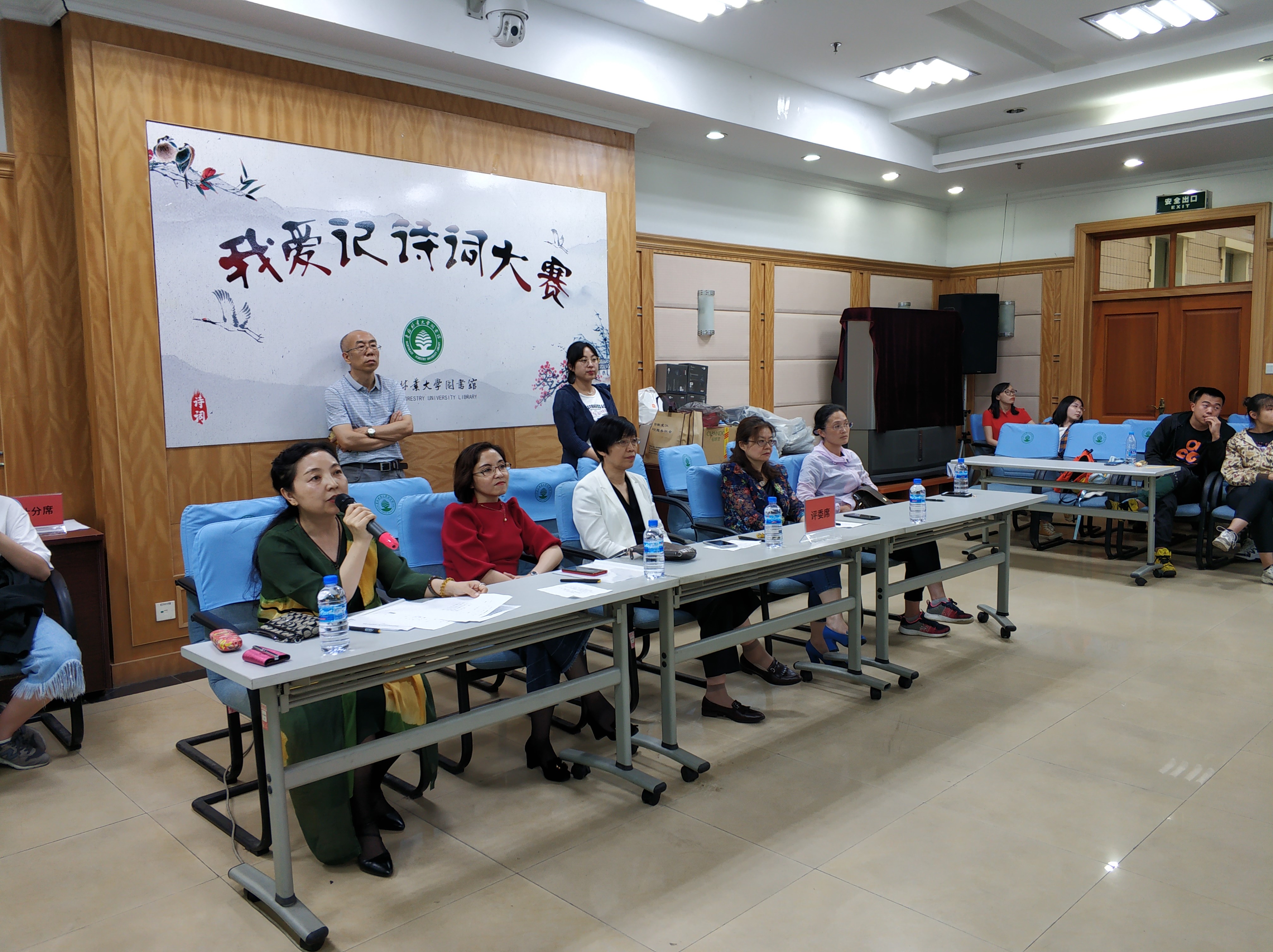 为庆祝建国70周年,弘扬中华优秀传统文化,助力学校“双一流”学科建设,6月14日下午2点,在图书馆A楼多功能厅由图书馆和林学院共同举办的“我爱记诗词”大赛的决赛如期进行。本次大赛是2019年“东林飘书香•祖国在我心”主题系列活动之一。大赛得到了中国知网的大力支持。图书馆党总支书记魏晓慧、林学院党委书记宋妍、团委书记杨冰雨、图书馆阅读推广部主任赵一霖、副研究馆员张静担任了决赛评委。