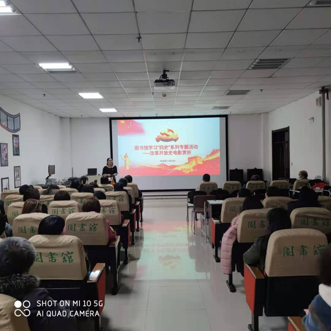 按照图书馆党总支关于“四史”学习教育工作方案的安排,11月25日下午,在B023影音室组织全体教工学习改革开放史并赏析影片《中国合伙人2》。本次活动既是党员的主题党日活动,也是教工的政治理论学习活动。本次活动由图书馆党总支委员、第四党支部书记刘明主持。