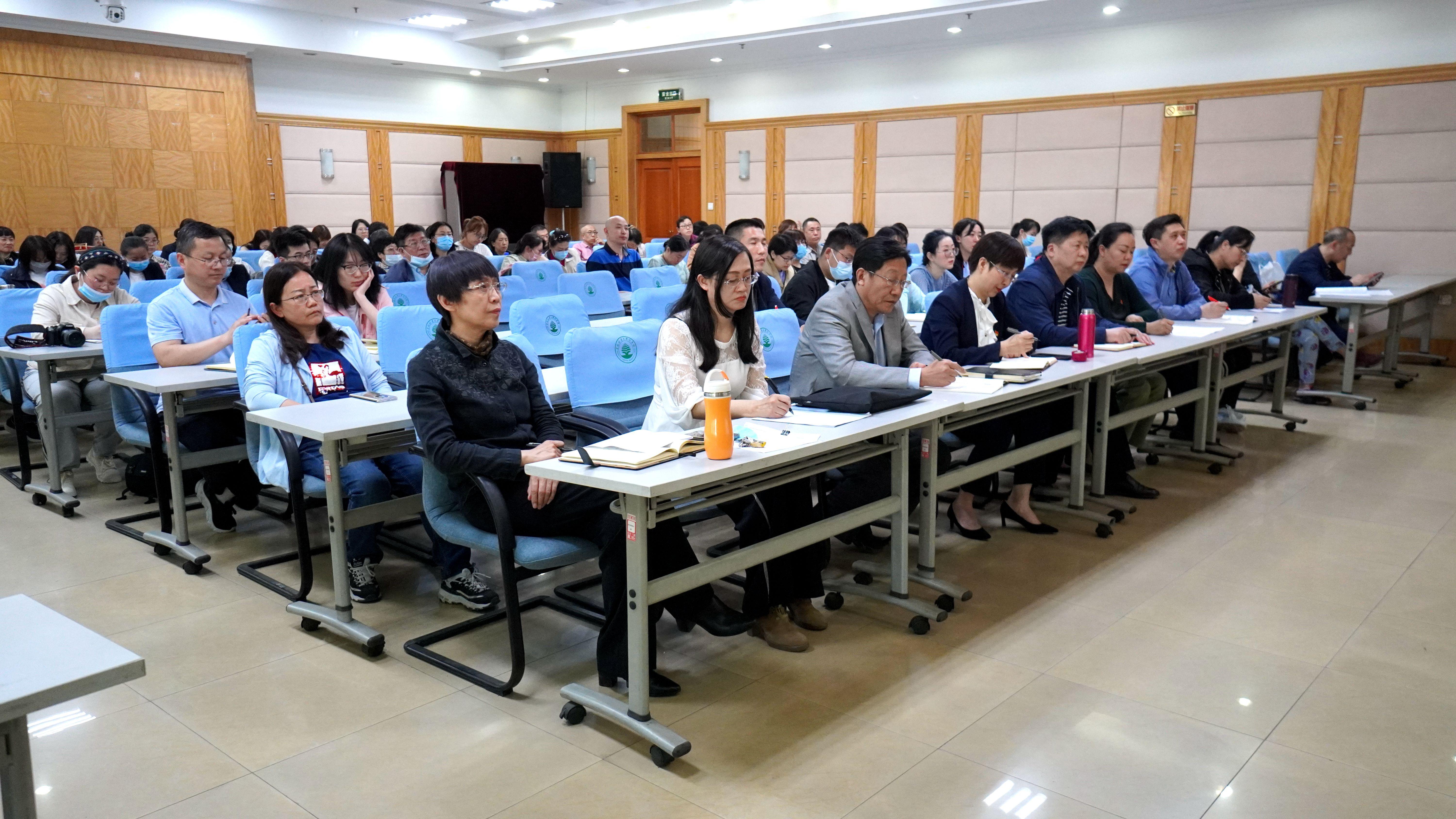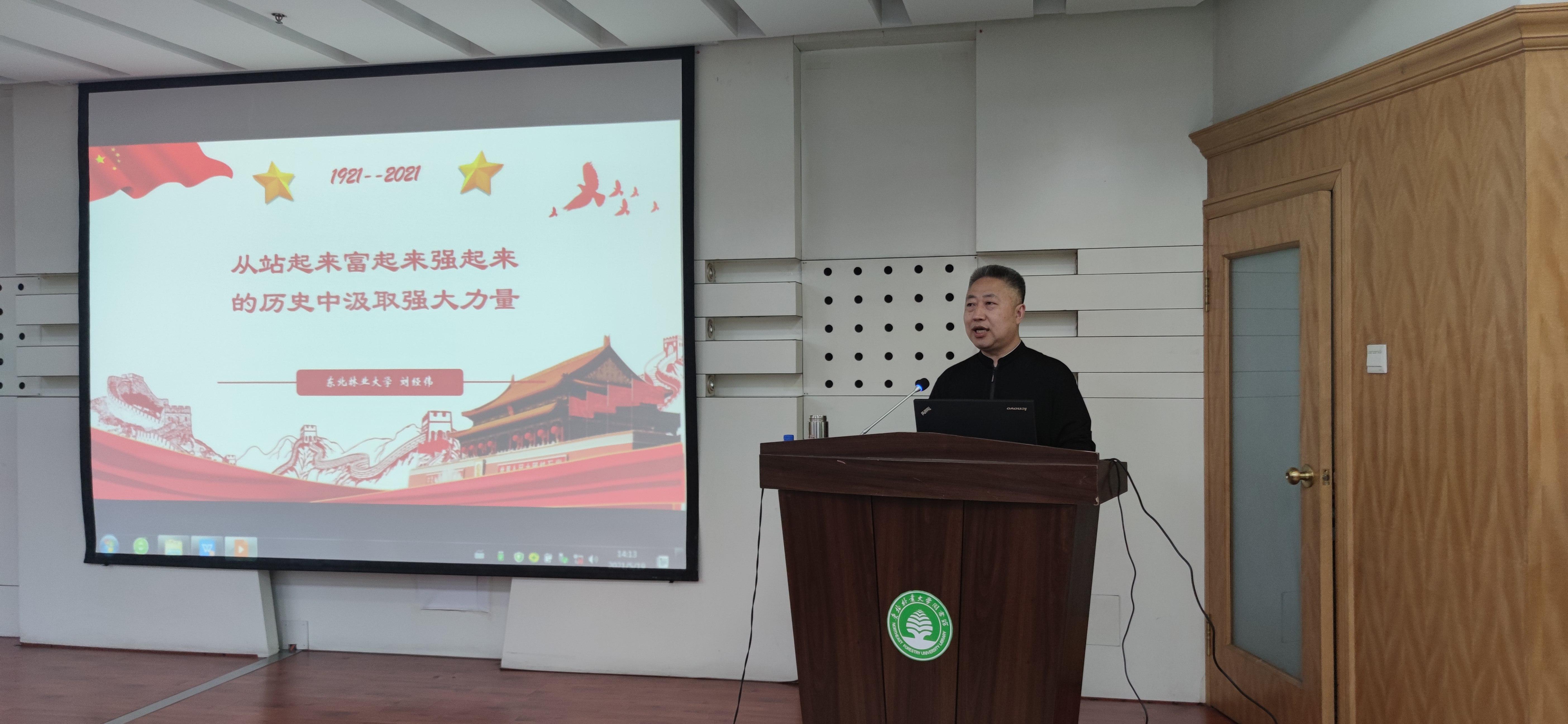 为贯彻落实习近平总书记在党史教育动员大会上的重要讲话精神,深入推进党史学习教育,进一步引导党员干部、教职工学史明理、学史增信、学史崇德、学史力行,5月19日下午在图书馆A楼多功能厅,图书馆、国际交流学院、奥林学院3个基层党组织联合举办党史学习教育宣讲报告会。特别邀请学校党史学习教育宣讲团团长,马克思主义学院党委书记刘经纬做题为《从站起来富起来强起来的历史中汲取强大精神力量》宣讲报告。三个单位的领导班子成员、全体党员、教职工参加了学习。报告会由图书馆党总支书记魏晓慧主持。