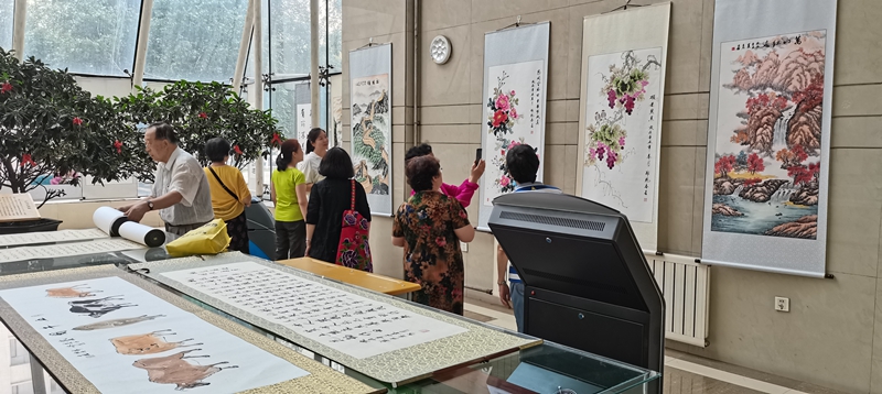 本次书画展是学校庆祝中国共产党成立100周年系列活动之一,由离退处和图书馆共同承办,于6月16日在行政楼和图书馆同时展出,逾千名师生观看了书画展。