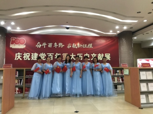 为了庆祝党的百年华诞,检索教研室组织开展了“我爱党,我爱馆”的风采展示活动。美女们穿上礼服,带上相机,带着对党的真心祝福,带着对工作岗位的热爱之情,在图书馆雅致的环境中,拍下一张又一张美丽又有意义的照片。