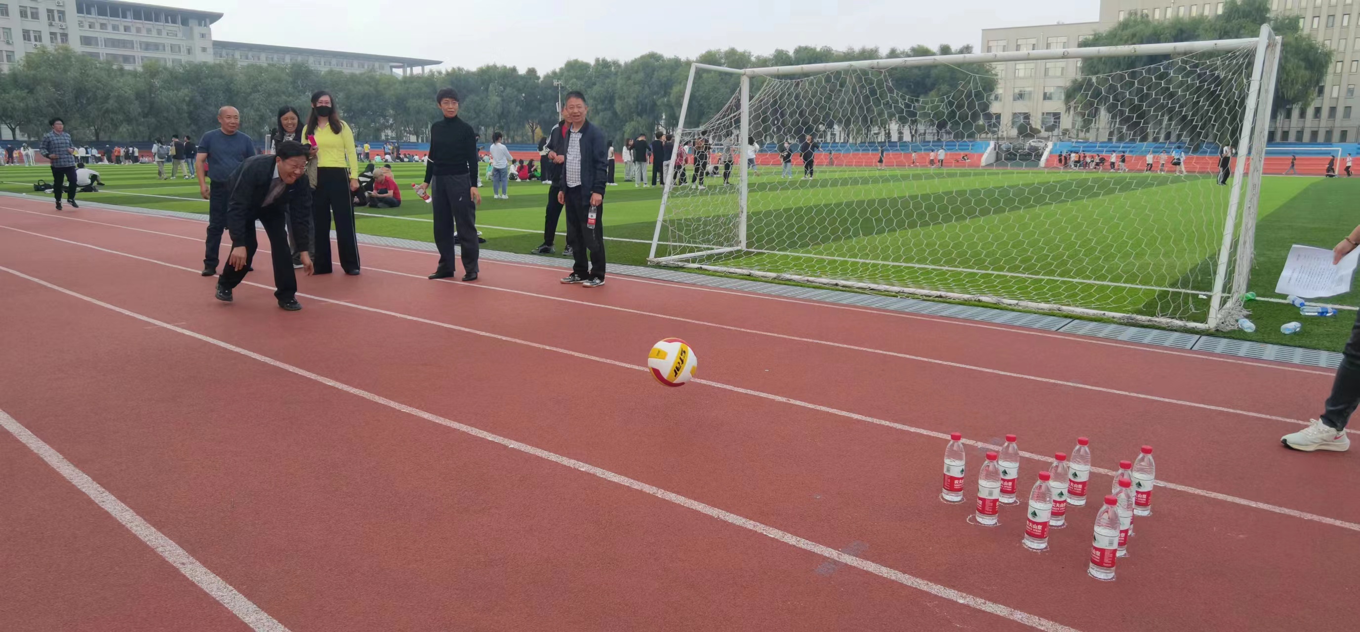 运动会设置了6个游戏项目,分别是“趣味跑接力”、“背靠背夹球”、“趣味保龄球”、“海底捞月”、“踢毽子”、“定点投篮”,均为集体竞赛项目,分组进行比赛。“趣味跑接力”是速度与激情的比拼,;“背靠背夹球”是队员们默契度的考验,;“趣味保龄球”是耐力和精准度的较量;“海底捞月”团队智慧的考验;”“踢毽子”是对快乐的传递;“定点投篮”是经典比赛项目,专注、协作、创新一起收获好成绩。