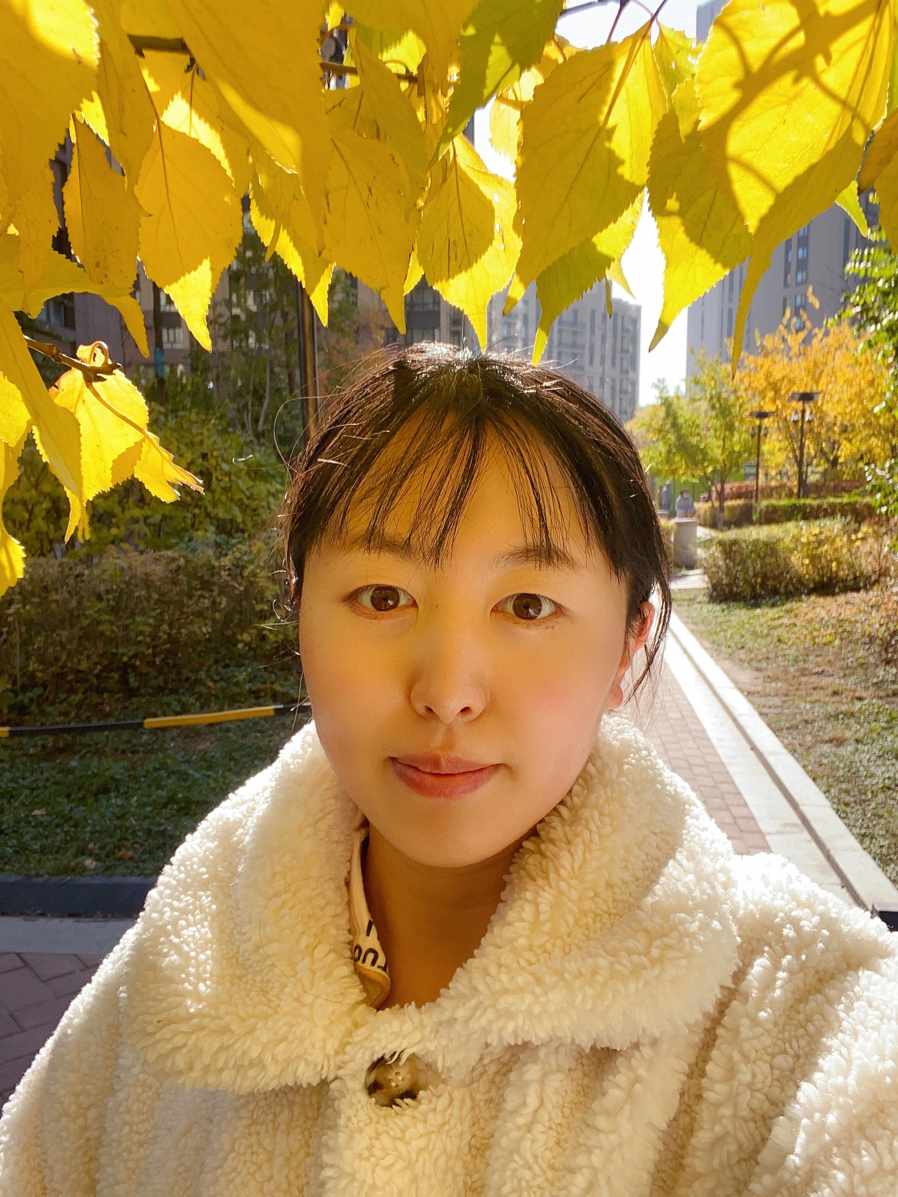 阳光透过树叶,照在可爱的脸上