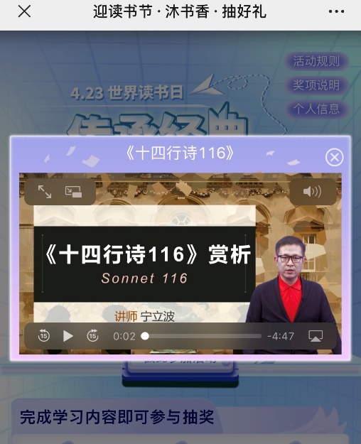 读书日线上活动形式多样,包括打卡“新东方多媒体学习库”、参与“万方数据杯”高校知识答题竞赛、“爱思唯尔阅读积分挑战赛”3个专题活动,有趣的活动点燃师生的参与热情,在收获知识的同时收获了快乐,受到师生的关注。