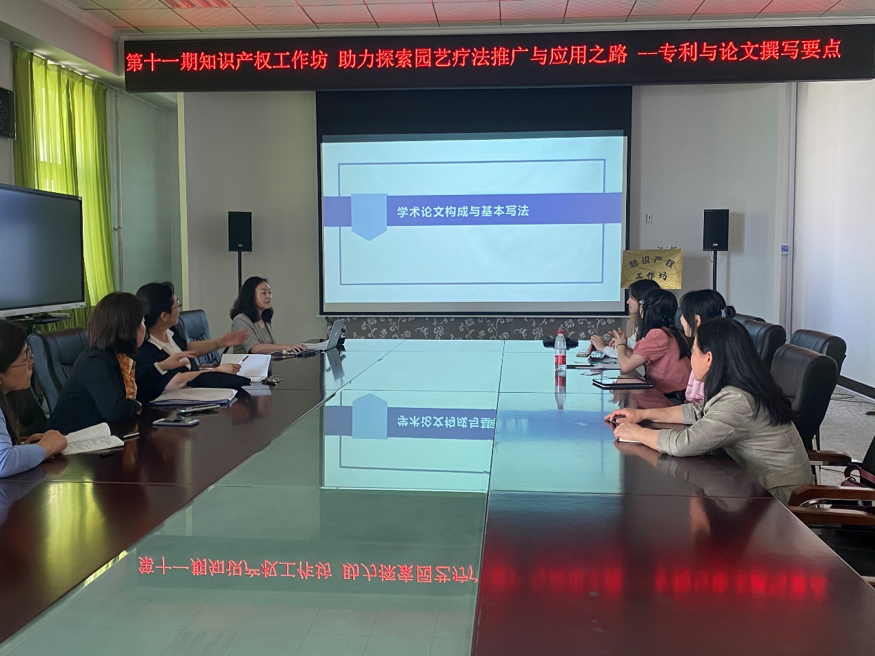 2023年6月6日,知识产权工作坊第十一期活动在图书馆502室举办,此次活动的主题是助力探索园艺疗法推广与应用之路----专利与论文撰写要点。由知识产权信息服务与研究中心主任李海英老师、检索教研室高继红老师联合主讲。项目指导教师机电工程学院吴晓红副教授及项目组成员、图书馆刘亚丽副馆长及相关人员参加了本次活动。