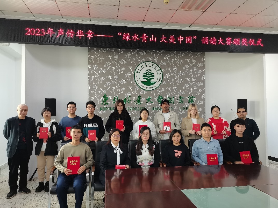 李雷鹏代表图书馆向获奖人员颁发了证书和奖品。她指出:本次诵读活动是以深入学习贯彻习近平总书记勉励寄语精神、强化生态文明教育为主旨开展的一次非常有意义的活动。东北林业大学是以林科为优势、以林业工程为特色的多学科协调发展的高等学校,生态文明教育与我校联系紧密而影响深远。我们要以习近平总书记勉励寄语精神为根本遵循,厚植生态文明理念,倡导生态文明行为,通过我们的言行将生态文明教育融入校园文化建设。