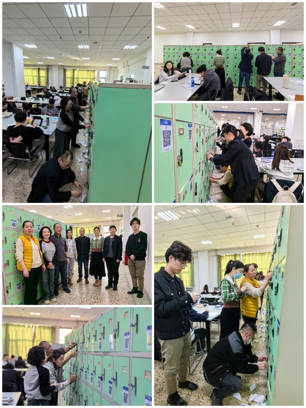 图书馆在B楼二层和三层为读者设有2000多个免费书包柜,每学期初需要读者通过预约使用。由于图书馆读者人数多,为确保书包柜资源的公平分配和高效利用,避免资源浪费,预约后的读者能够按时使用这些柜子,第三党支部党员群众经过两个多小时的共同努力,完成所有书包柜签到码粘贴工作,既升级美化了学习环境,又为读者存放个人物品提供了方便。