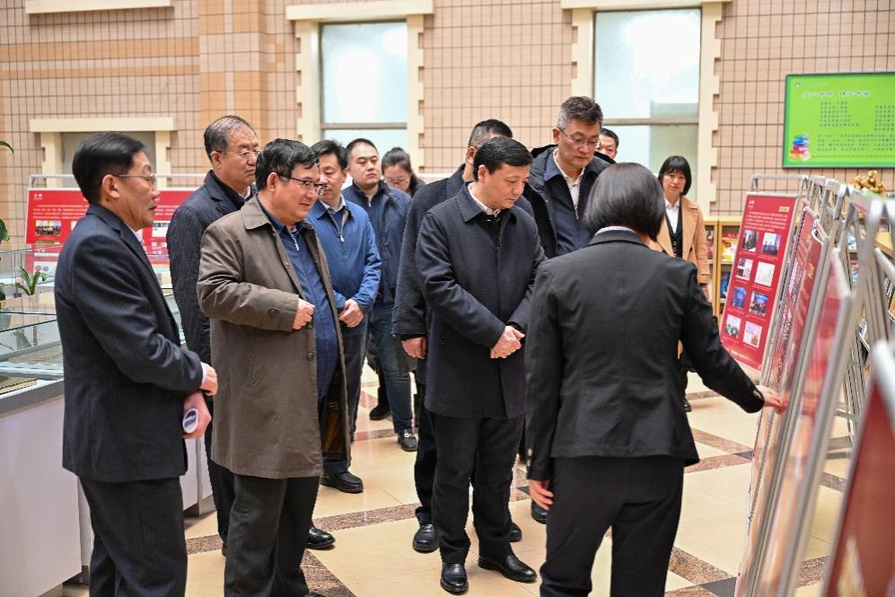 张凤斌对杨廷双一行来馆调研表示热烈欢迎,简要介绍了我校图书馆和知识产权服务工作情况。杨廷双一行参观了图书馆知识产权展区和古籍室。在知识产权展区,李海英主任介绍了我校知识产权信息服务发展历程和服务开展情况,展示了我校获批各类服务平台的批文、授牌及获得的荣誉等,直观地呈现了我馆在服务技术创新、科研支持等方面提供的优质服务。在古籍室,张凤斌馆长介绍了我馆古籍的收藏、保护和利用情况。杨廷双对我校知识产权信息服务工作取得的成效和文化传承等方面发挥的积极作用给予了充分的肯定。