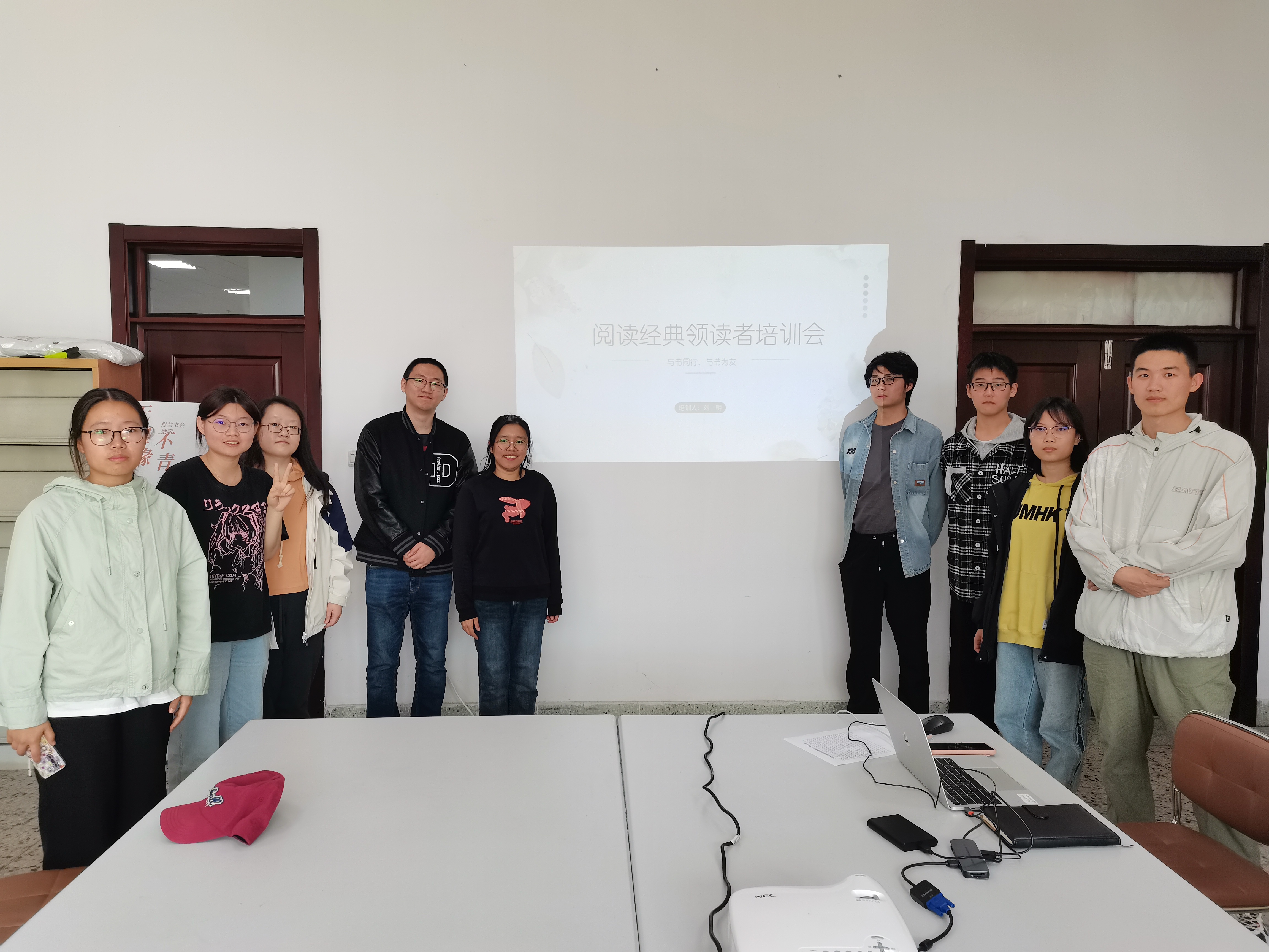 为了深入学习贯彻习近平文化思想,创新“沁润书香 致敬经典”主题系列活动的形式内容,践行“典耀中华”主题读书活动,5月15日下午,阅读推广部在B202成栋书院组织开展了“阅读经典”领读者学习培训活动。阅读推广部主任刘明为新招募的11位学生领读者作了专题培训。