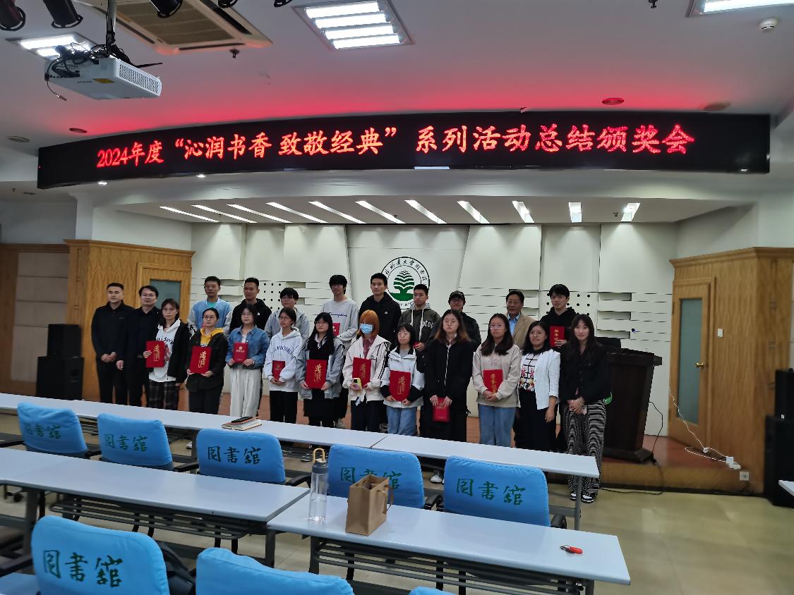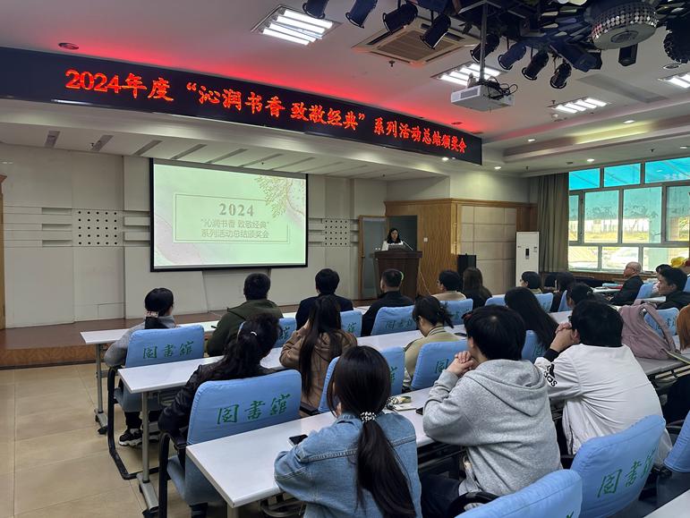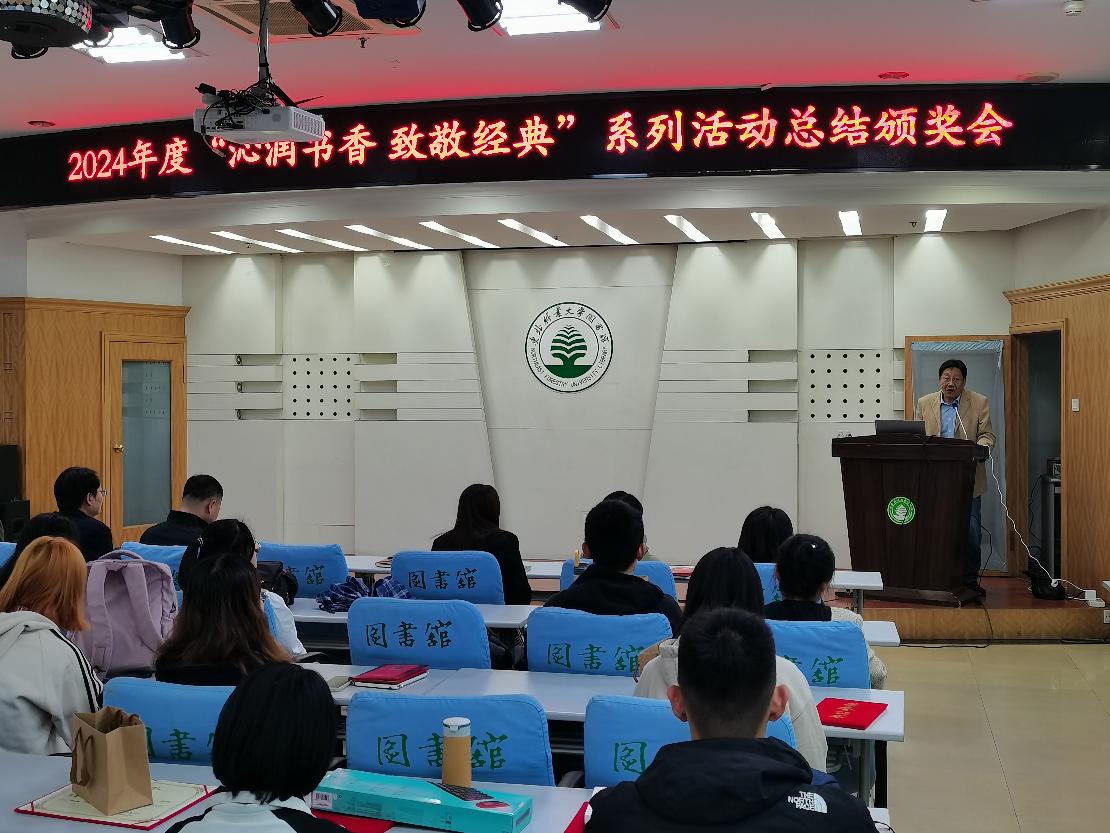 2024年9月25日下午,图书馆在多功能厅召开了“沁润书香 致敬经典”系列活动总结表彰会,图书馆主要领导、数据商负责人、获奖读者代表及学生读者近80余人参会,会议由阅读推广部主任刘明主持。