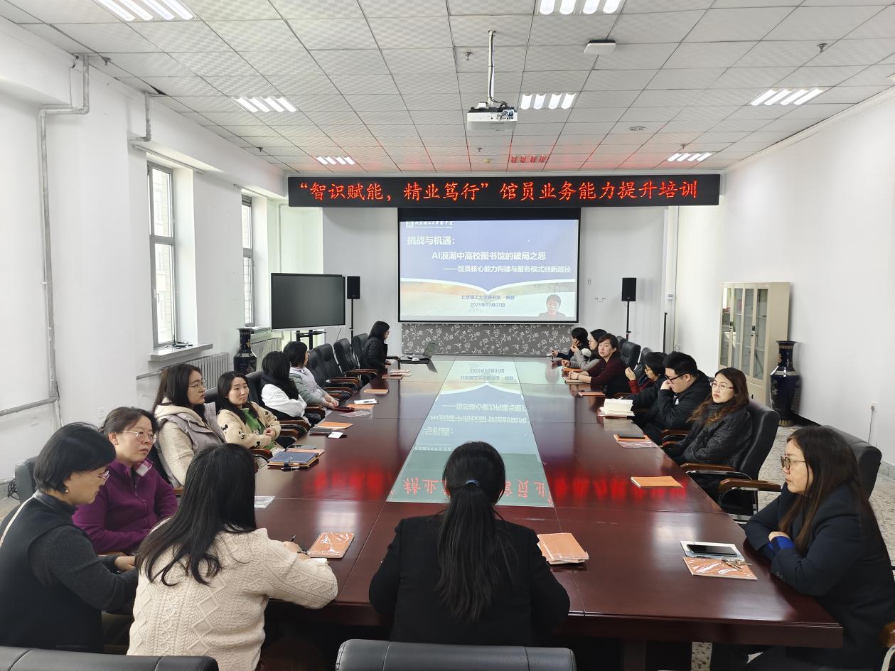 为深入贯彻习近平新时代中国特色社会主义思想,全面落实党的二十大及二十届二中、三中全会精神,积极贯彻习近平总书记关于新质生产力的重要论述,3月7日上午,图书馆第二党支部在B502会议室举办“智识赋能,精业笃行”馆员业务能力提升培训会。信息服务部和检索教研室全体馆员参加了此次培训会。