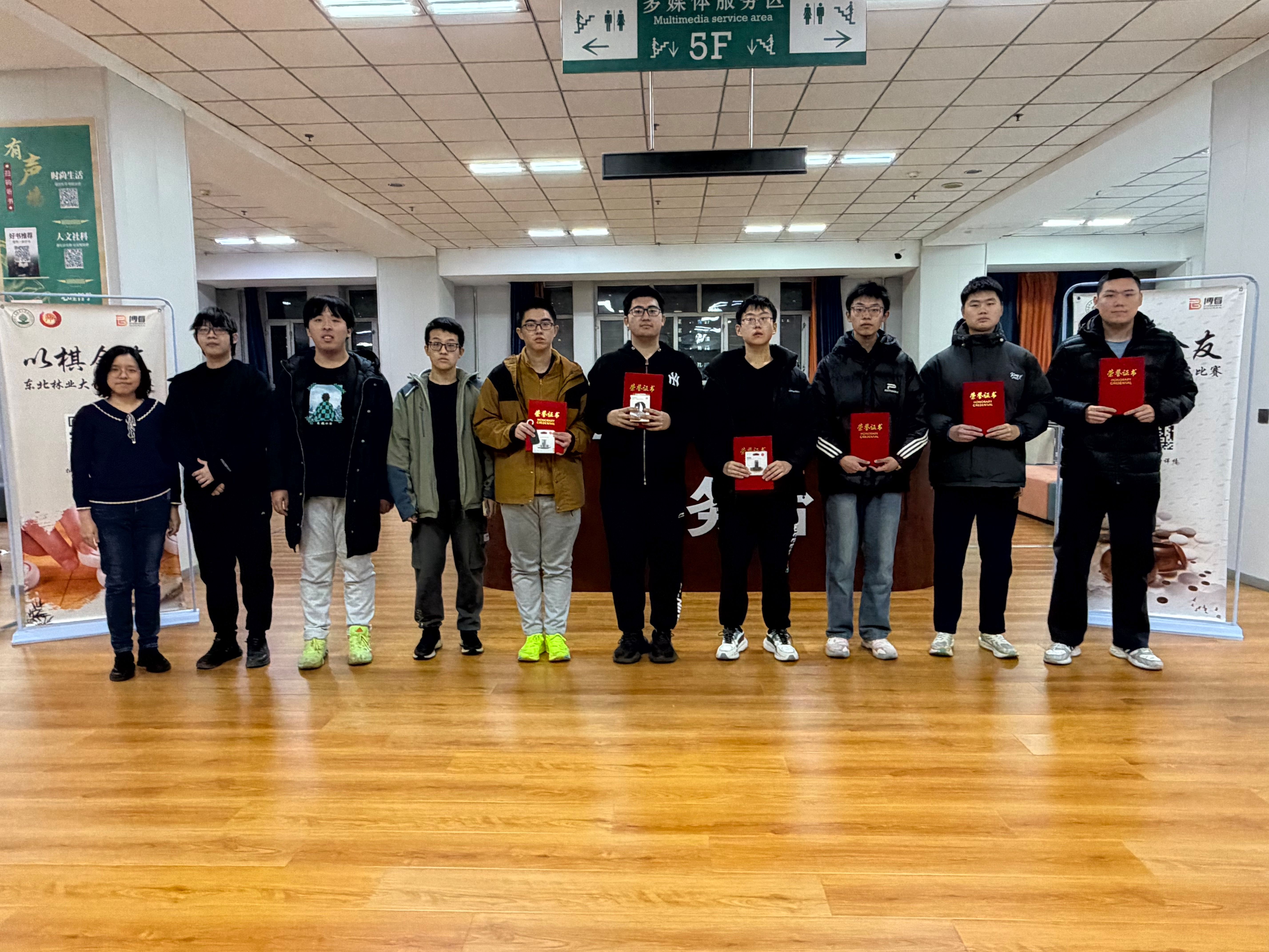 经过4个小时的激烈角逐,退休教师刘文超获得中国象棋组冠军,退休教师郭维忠和学生董奇昊获得中国象棋组亚军,退休教师隋振章、鄢冬青和学生周艳涛获得中国象棋组季军。学生刘铠涤获得围棋组冠军,学生吕恩博、吕帅辰获得围棋组亚军,学生董翔宇、陈嘉睿、王瑞祺获得围棋组季军。