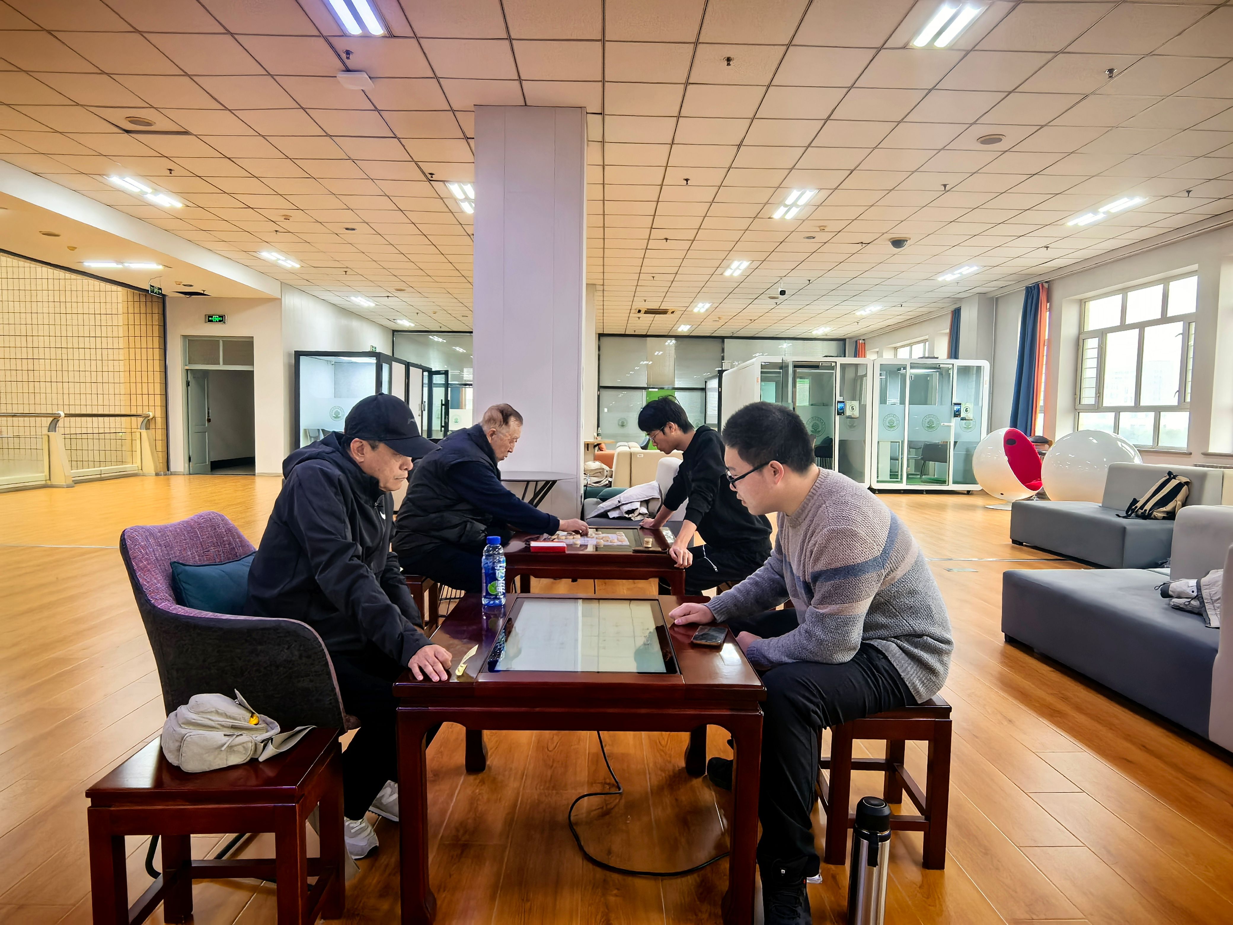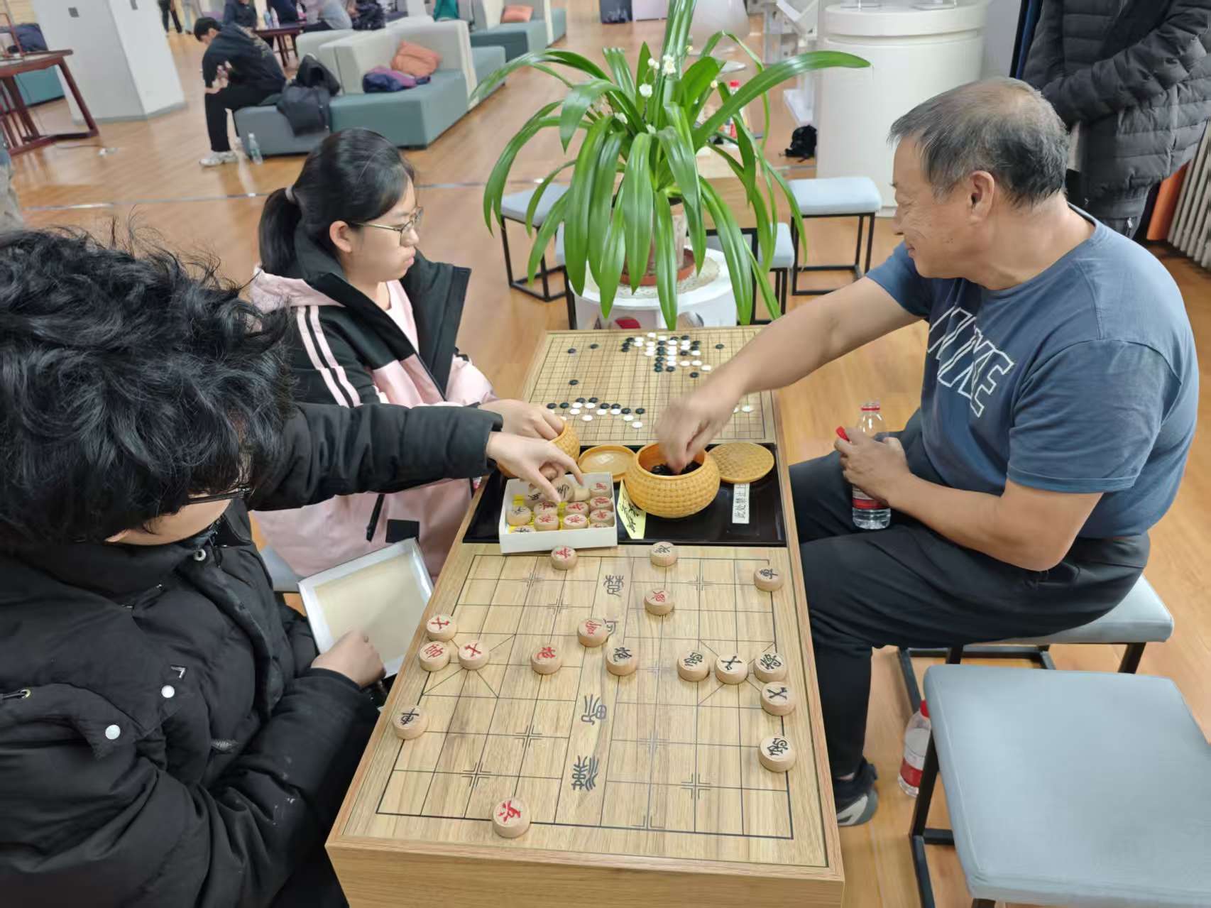 比赛过程中,教师们神情专注、落子从容,举手投足间尽显岁月沉淀的沉稳与智慧;学子们则带着敬意与活力,认真思考每一步棋局,在与前辈的对弈中不仅学习棋艺技巧,更感受着老一辈东林人严谨专注的处事态度。棋盘之上,棋子交错纵横,既是策略与逻辑的较量,更是代际间无声的交流——教师们偶尔为学子指点棋局,分享多年下棋心得;学子们则主动为前辈调整座椅,温情在对弈间自然流淌。