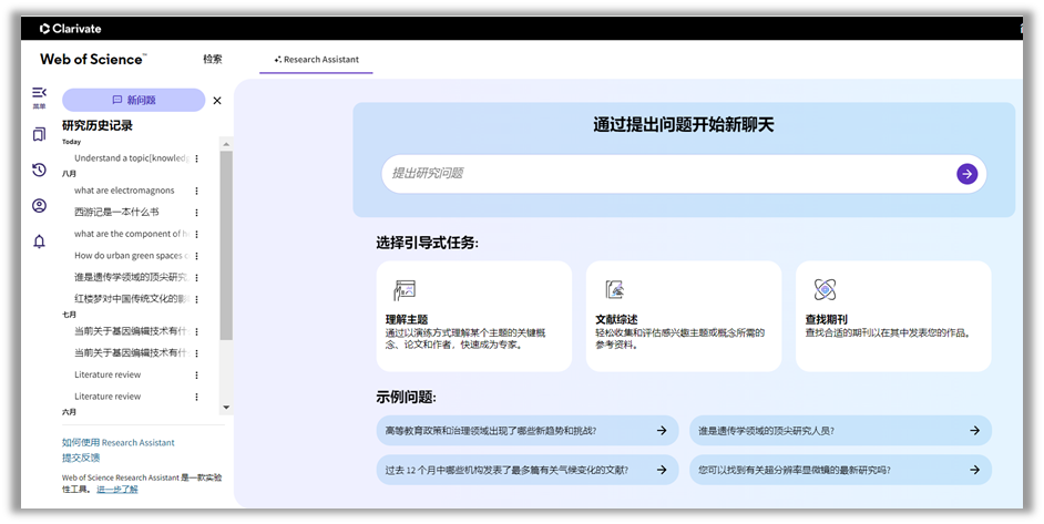 当前很多研究人员表示,他们能够投入到核心研究工作的时间和精力越来越少。为了更加高效地开展研究工作,更有把握地确定下一步研究计划,他们迫切需要更好的研究工具。基于此,Web of Science™ 研究助手应运而生。这是一款负责任的生成式人工智能驱动的创新工具,通过提升研究效率,迅速发现全新洞见,使您能够专注于新知识的创造。