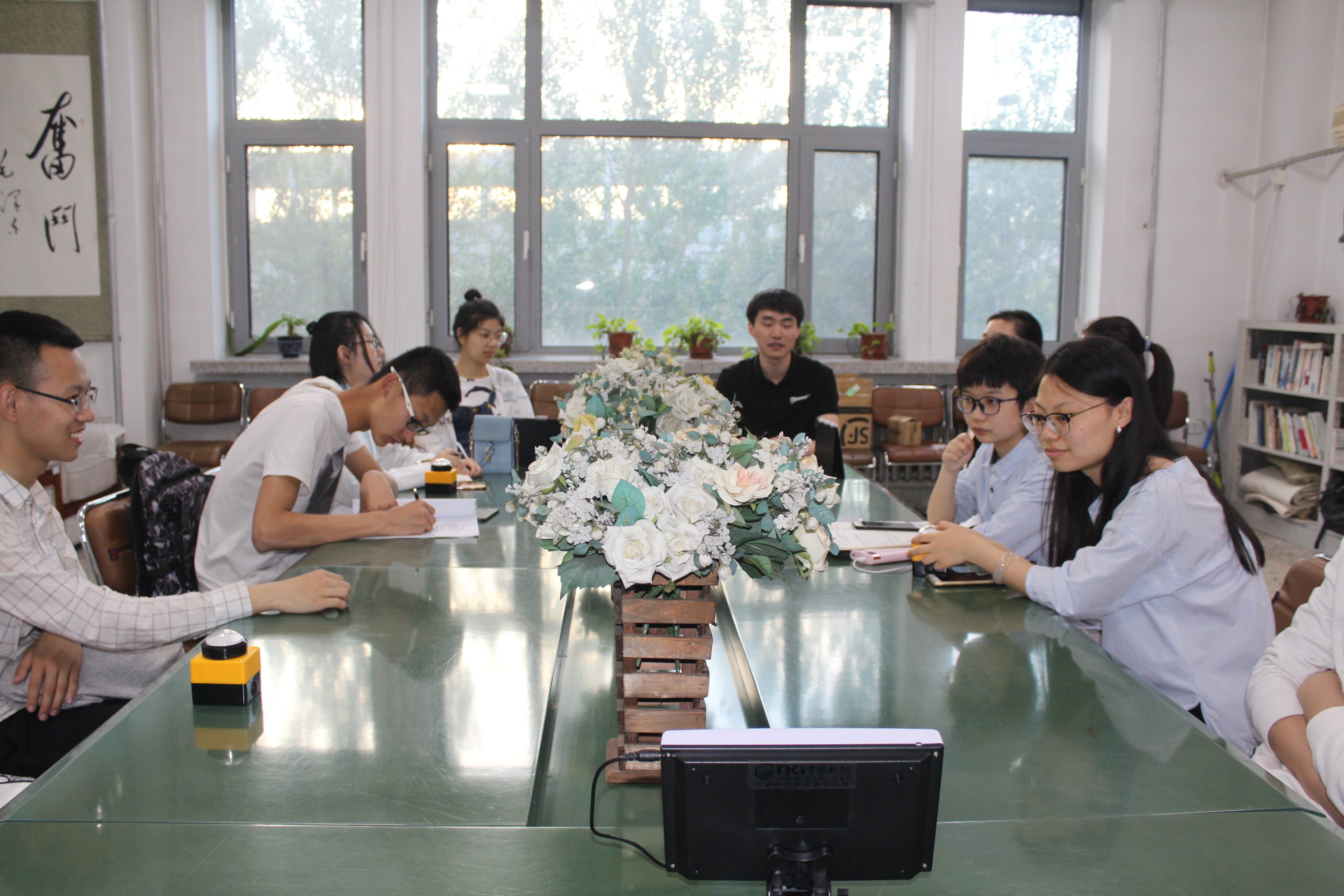 5月25日18点,进入“我爱记诗词”决赛的4支队伍来到图书馆读者沙龙(B203)参加决赛前的预备会。图书馆业务推广部的老师及本次大赛技术支持方中国知网的老师一同参会。