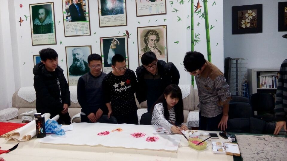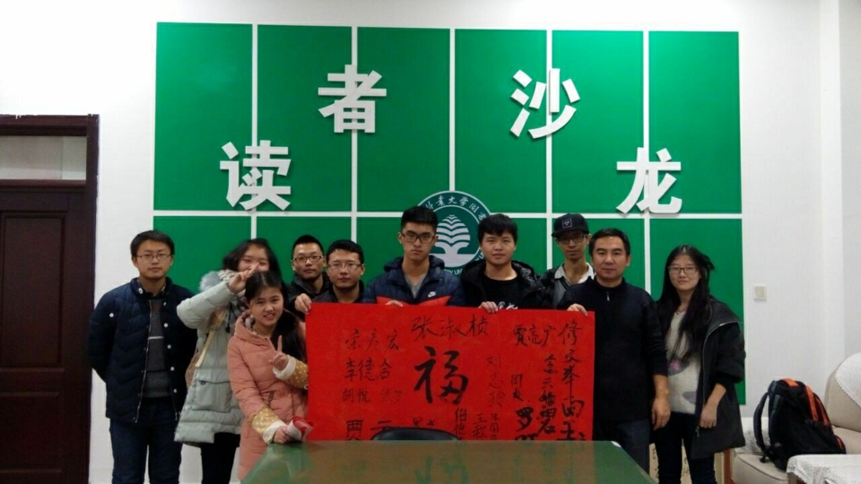 2015年12月21日晚6时至8时,以“泼墨卷轴、博雅校园”为主题的第64期读者沙龙活动在图书馆B203室举行。本期活动由东北林业大学书画协会承办,书画协会指导教师、图书馆馆员修文举老师主持沙龙活动,协会成员和爱好书画艺术的读者近30人欢聚一堂,以书画创作的形式交流经验、喜迎新春。