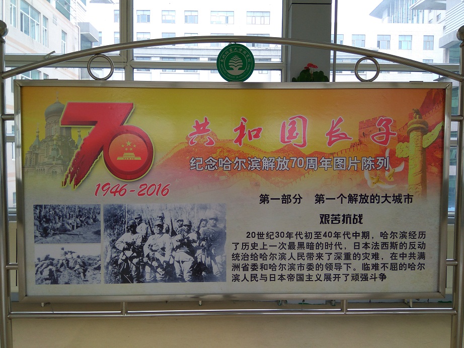 2016年是中国共产党建党95周年,也是哈尔滨解放70周年,为了隆重纪念这个特殊的时刻,5月23日-6月23日,文献资源服务党支部在三楼连廊秀空间推出《共和国长子—纪念哈尔滨解放70周年图片展》。