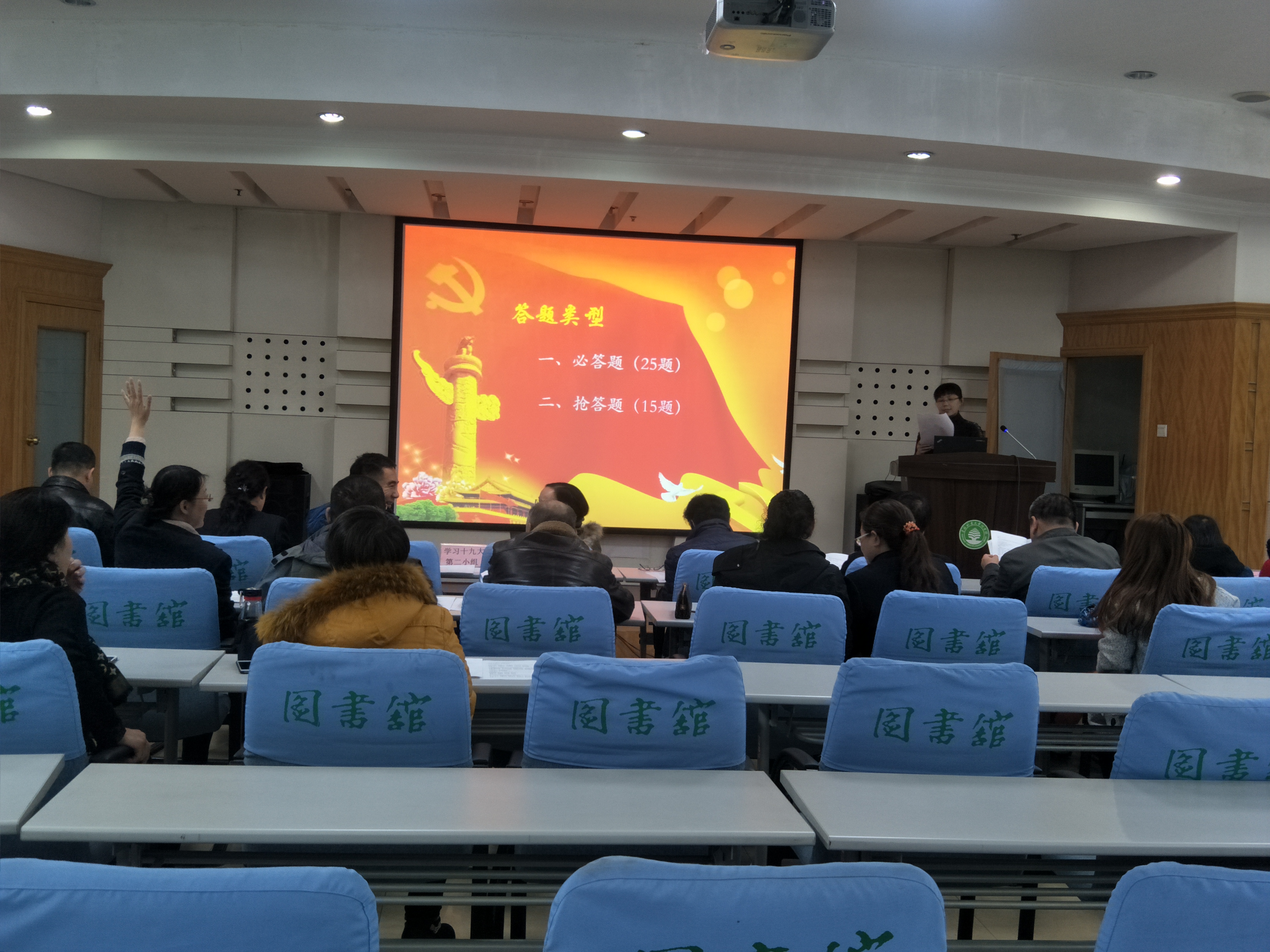 为进一步深入学习、贯彻落实党的十九大精神,11月15日下午,图书馆第一党支部在图书馆A区多功能厅举办了学习十九大精神知识竞赛。