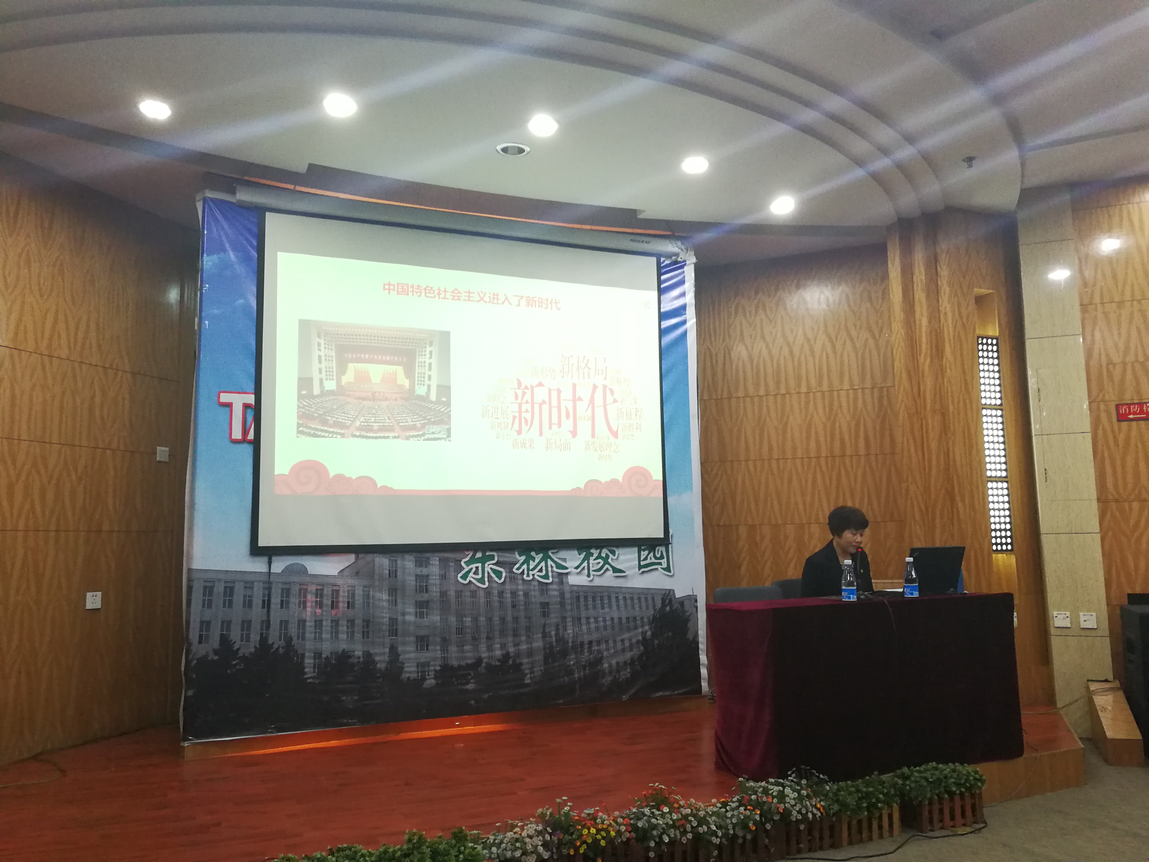 中国特色社会主义进入新时代具有重大意义,中华民族迎来了从站起来、富起来到强起来的伟大飞跃。王越芬教授用了一个多小时的时间,从“中国特色社会主义进入新时代的依据”、“新时代的内涵”、“中国特色社会主义进入新时代的重大意义”、“以实际行动迎接新时代”四个方面深刻阐述了中国特色社会主义全面进入了新时代的意义,我们如何迎接新时代以及我们如何完成新时代赋予的使命。