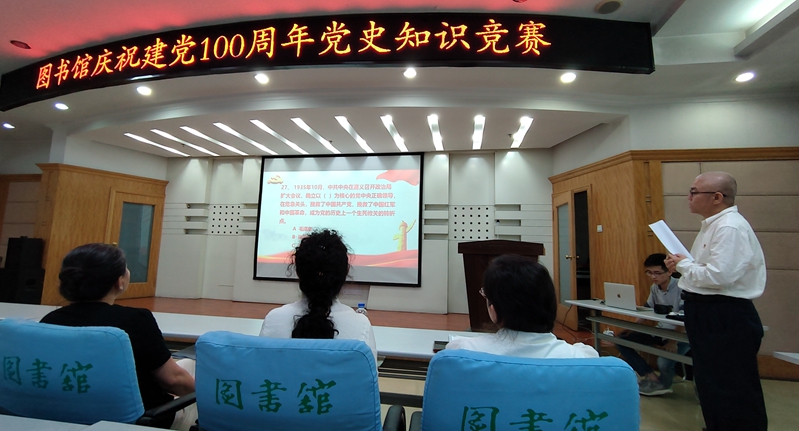 “党的百年历史有创新理论、有丰功伟绩、有光荣传统、有经验总结、有深刻教训,是取之不尽的精神宝库、用之不竭的力量源泉,必须把党的历史学习好、总结好,把党的成功经验传承好、发扬好。通过举办党史知识竞赛,在相互竞赛中,坚定理想信念,在相互交锋中,检验学习成果,让红色基因融入灵魂,让伟大精神薪火相传,激发广大党员、馆员爱党爱国热情,把党史学习教育成果转化为扎实做好文献信息资源保障和服务育人工作成效,做到学史明理、学史增信、学史崇德、学史力行,为推进“智慧图书馆”建设、助力学校高质量发展积聚奋进力量。”图书馆党总支书记魏晓慧在比赛开始前表示。