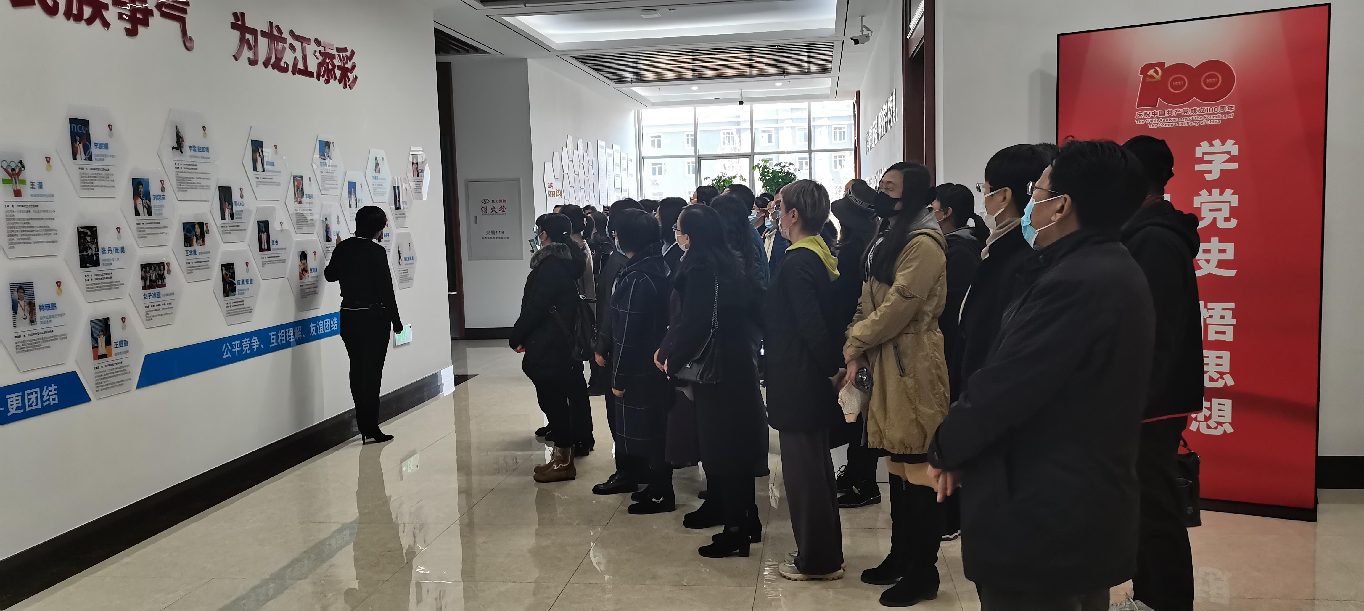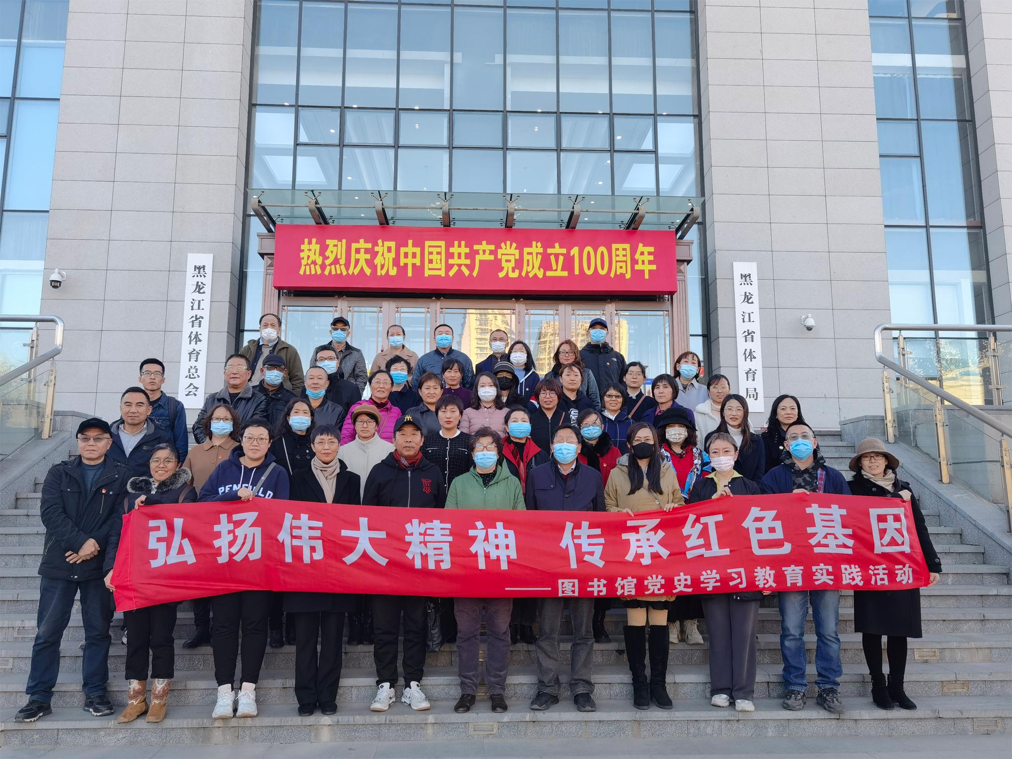 在北京冬奥会倒计时100天之际,为深入学习贯彻习近平总书记七一重要讲话精神,推进党史学习教育走深走实,弘扬中华体育精神,传承红色基因,10月27日,图书馆党总支组织全体党员赴省体育局参观《黑龙江省体育历史展》。