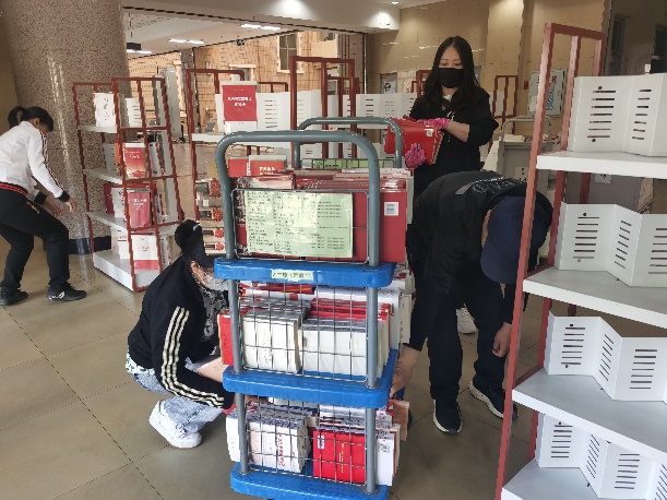 “在复兴之路上坚定前行”图书展于4月23日开展至今已有一个月的时间,为广大读者学习习近平新时代中国特色社会主义思想提供了文献保障。展览于近期结束,第四支部党员积极参与劳动,将图书下架分类、将书架恢复原位,为读者营造一个良好的学习环境。