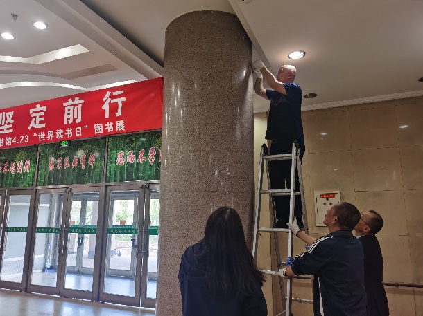 为高质量开展好学习贯彻习近平新时代中国特色社会主义思想主题教育,5月22日,图书馆第四党支部持续开展“我为读者办实事”主题党日活动,为A5多功能学习区设置两组师生物品暂存柜。同时,“在复兴之路上坚定前行”图书展结束,支部党员将展出书籍、展架等物品进行整理归位,为读者营造整洁、方便的阅览环境。
