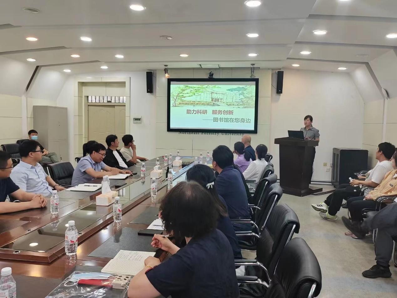 图书馆检索教研室主任李海英作了题为《助力科研,服务创新—图书馆就在你身边》的报告,从资源、服务、空间三个方面,以林学院学科特色和服务需求为导向,详细介绍了图书馆的资源与服务。林学院师生认真听取了李海英研究馆员的介绍,纷纷表示通过介绍对图书馆提供的相关数据库、各项学术支持服务、获取资源的相关途径等有了更深入的了解。师生代表们分别从图书馆的文献资源、科研工具、专利服务、宣传推广等方面提出了多项建设性意见和建议,图书馆领导和相关业务负责人现场解疑释惑、回应诉求。