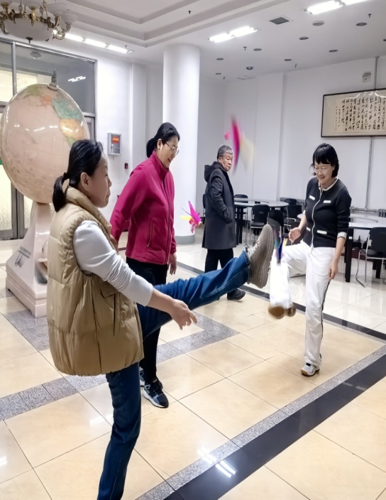 踢毽子区域也是热闹非凡。五颜六色的毽子在大家的脚上、膝上欢快地翻飞跳跃。有的同事技艺娴熟,盘、磕、拐、绷,各种花式动作信手拈来,毽子如同被施了魔法般久久不落;有的同事虽稍显生疏,但全神贯注、不言放弃的样子同样赢得了大家的鼓励和掌声。这一刻,胜负已不重要,尽情享受运动带来的乐趣才是真谛。