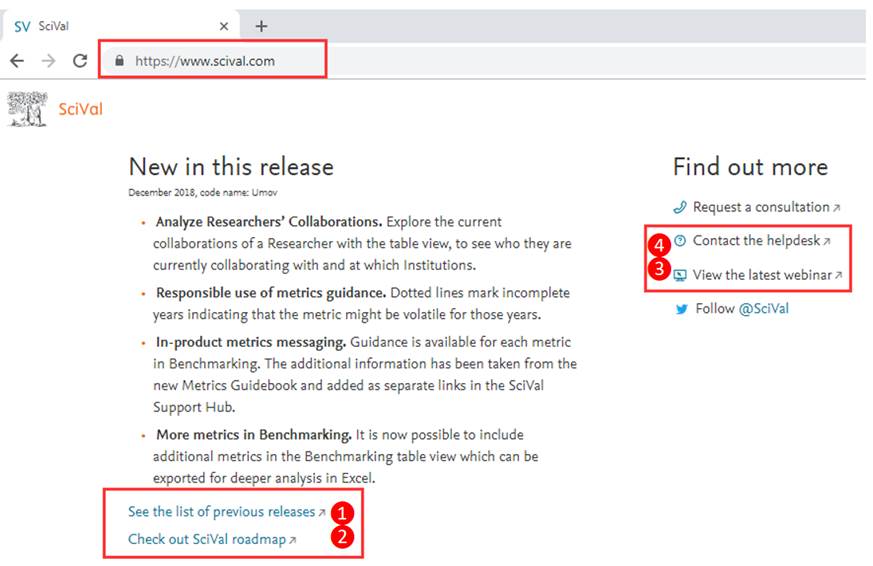 ❸ 收听SciVal不定期的在线课程:涉及主要功能升级时,登陆SciVal后会收到在线课程通知;