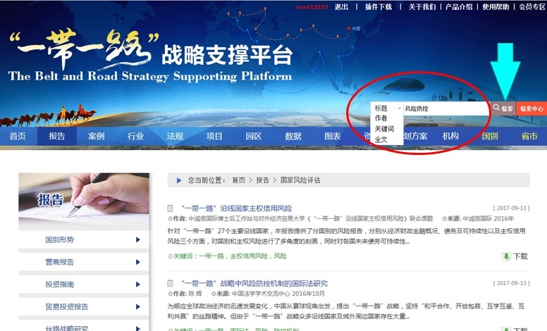 如想查找有关“一带一路”的研究报告,可以通过浏览导航条来实现(见图1)。