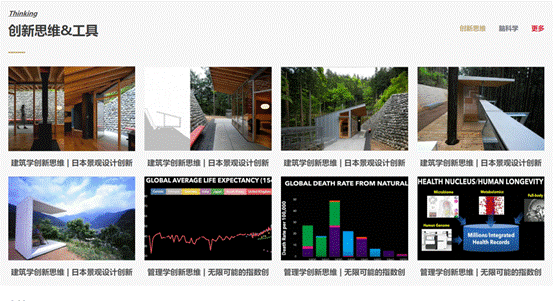 《全球创新思维》板块汇聚了全球顶级的创新思维,内容涵盖了高校众多学科领域,具体包括管理学创新思维、信息科学创新思维、工业科学创新思维、建筑学创新思维、医学创新思维、艺术学创新思维等内容。