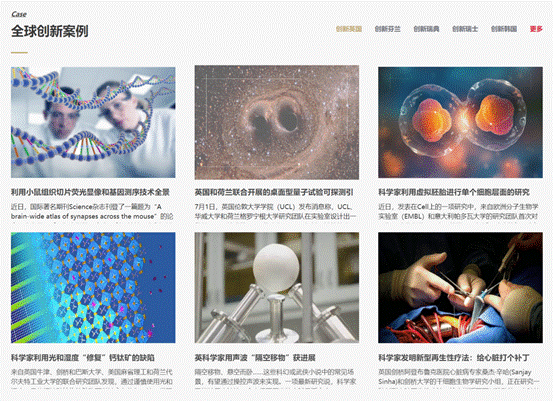 《全球创新案例》板块遴选了世界顶尖创新强国的突破性创新案例,案例涉及创新过程、创新成果、 创新实践等内容,可极大的开阔读者全球创新视野。平台会根据案例的创新指数、科技指数、热度指数综合评分并排名,每月按排名动态更新。