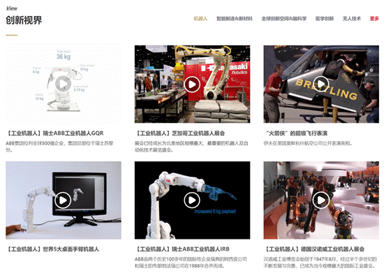 《全球创新视界》板块聚焦全球科技创新前沿,汇聚了区块链、人工智能、无人技术、新材料、大数据、混合现实(MR)、医学创新、艺术创新、机器人、智能制造等众多高新技术领域的创新资源。