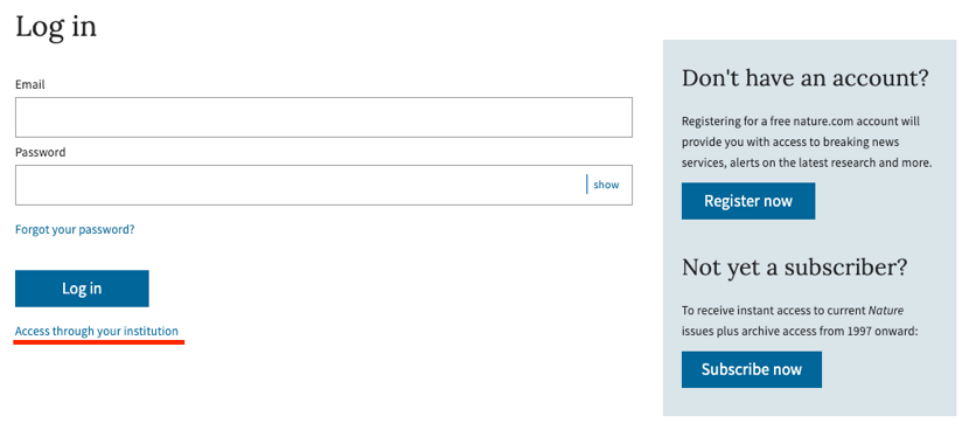 2、 在登录页面中,点击下方“Access through your institution”链接.