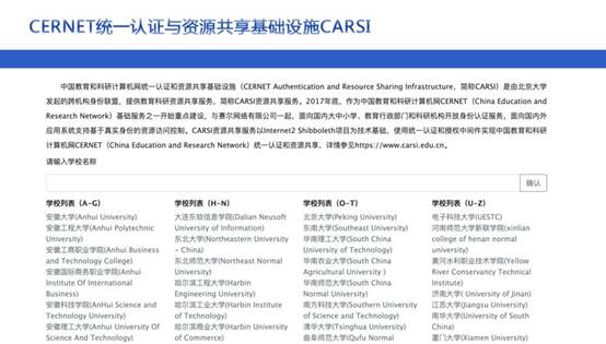 使用非校园IP地址(如非北大IP地址)打开浏览器,输入http://www.itextbook.cn点击右上方登录按钮,进入登录界面,选择“通过CARSI登录”按钮,进入身份联盟选择界面。