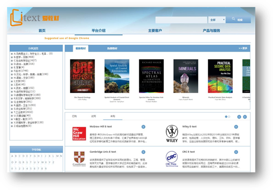 平台电子教材资源国内独有,汇集国际知名出版社理工类、科技类、管理类、医学、农学及人文社科类电子教材,这些教材已被国际知名院校指定为教学参考书;